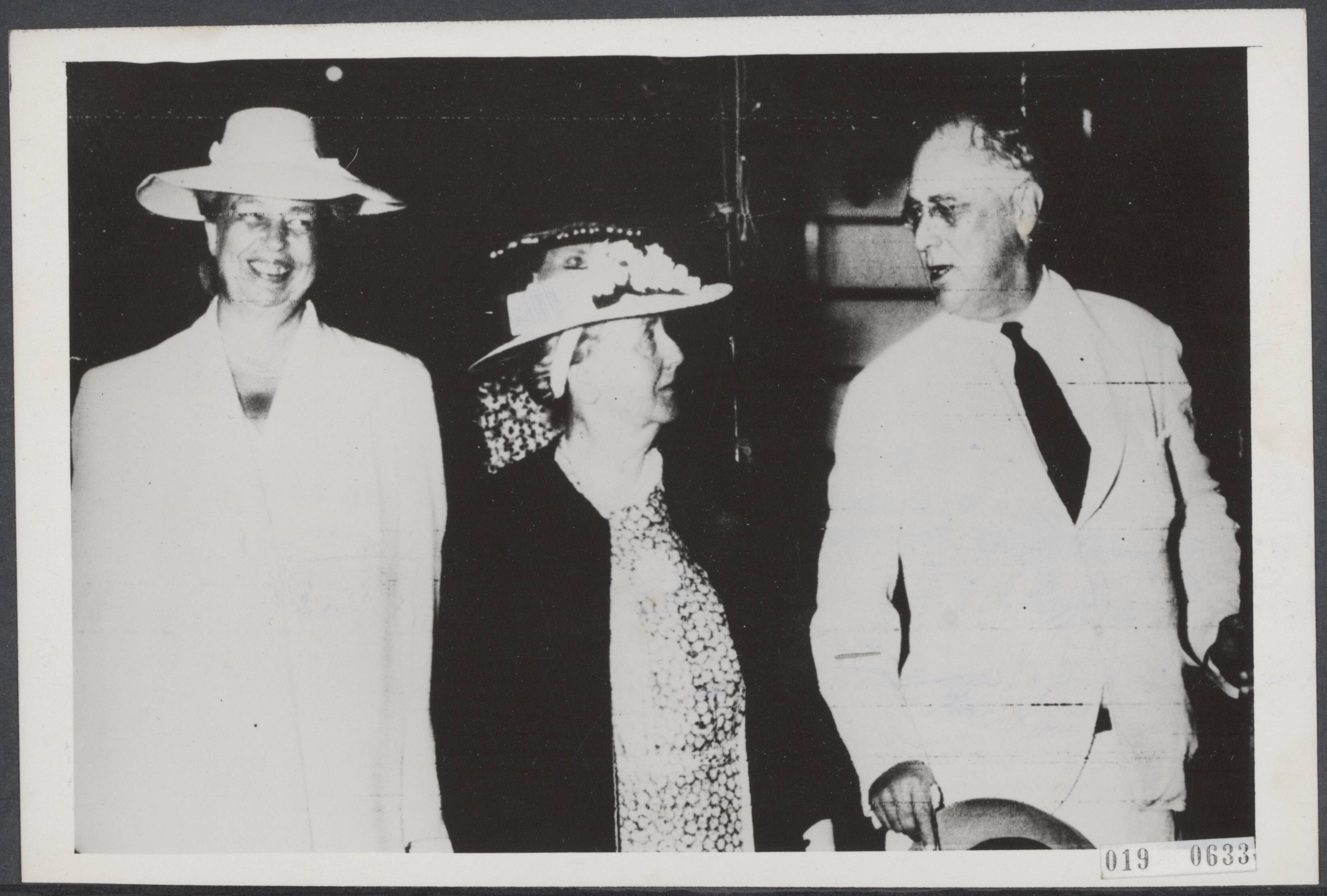Koningin Wilhelmina werd ontvangen op het Witte Huis door de Amerikaanse president Roosevelt en Eleanor Roosevelt tijdens haar bezoek aan de Verenigde Staten