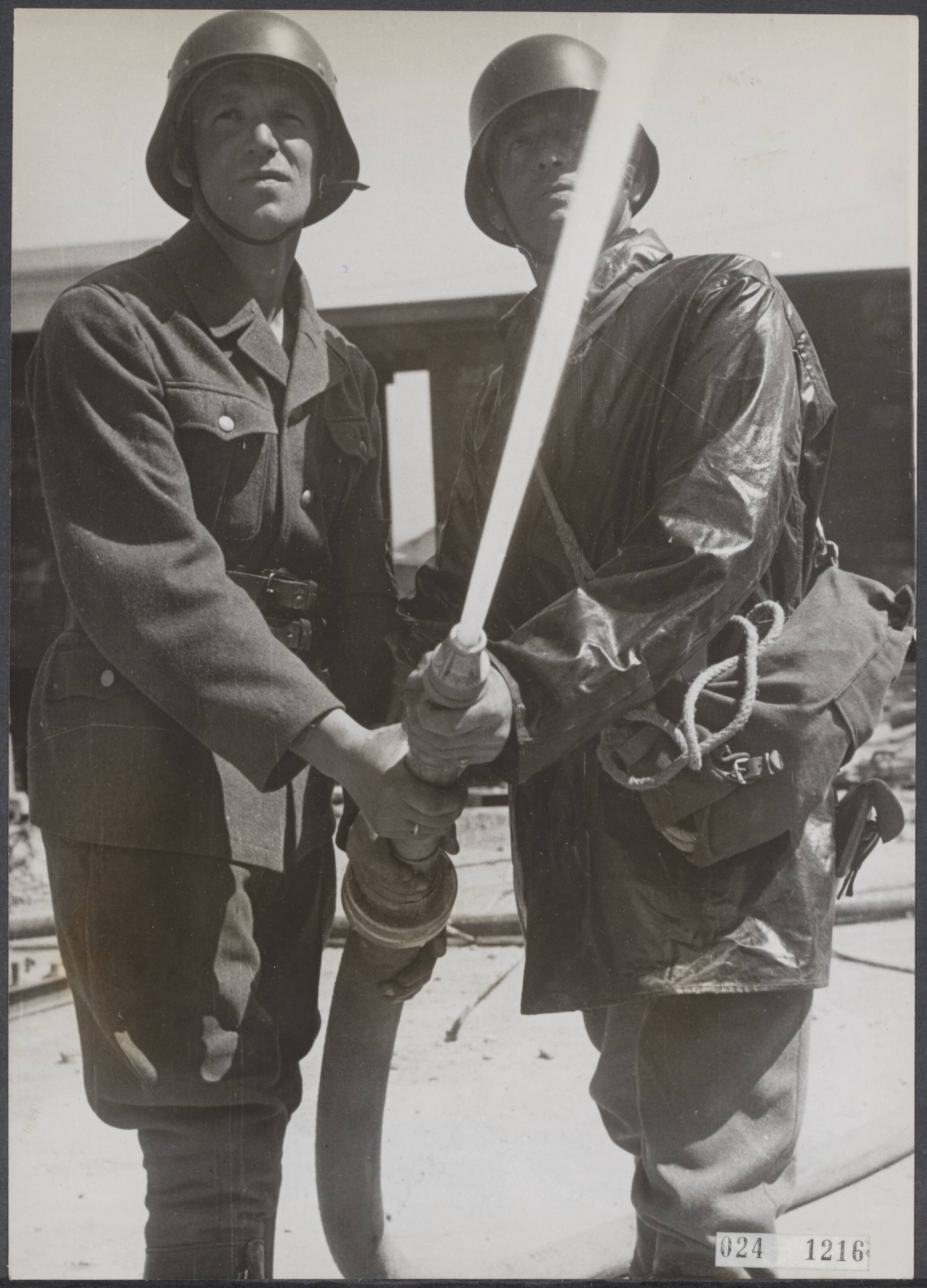 Bijschrift "Feuerschutz am Atlantik. Gemeinsma schaft O.T. Schutzkommando und Feuerschutzpolizei an ihren Aufgaben.".