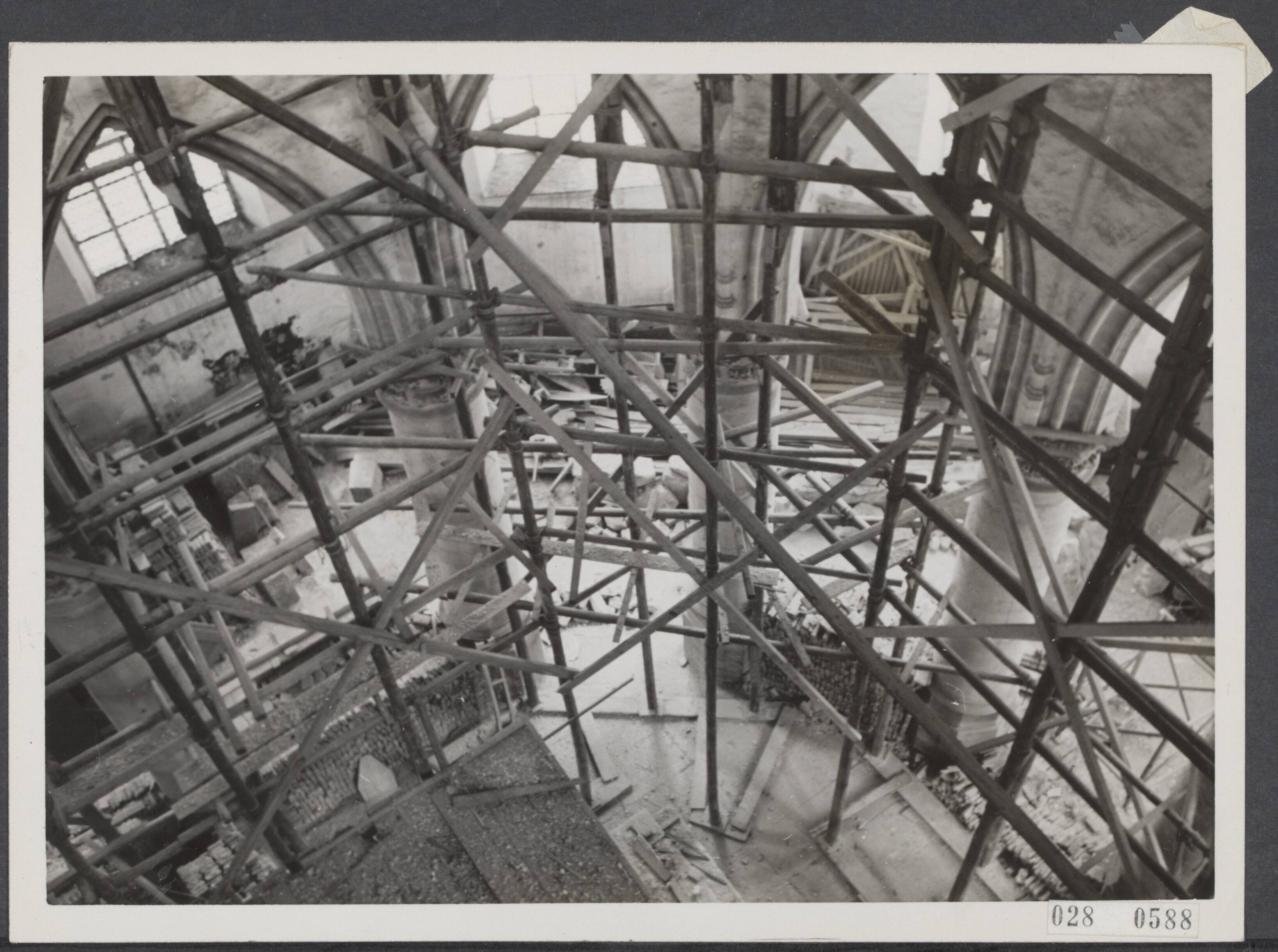 De uit de 15e eeuw daterende St. Laurenskerk te Alkmaar onder een algehele restauratie, met medewerking van Rijksmonumentenzorg. Het werk staat o.l.v. ir. v.d. Kloot Meyburg. Steigers beheersen het interieur van het gebouw