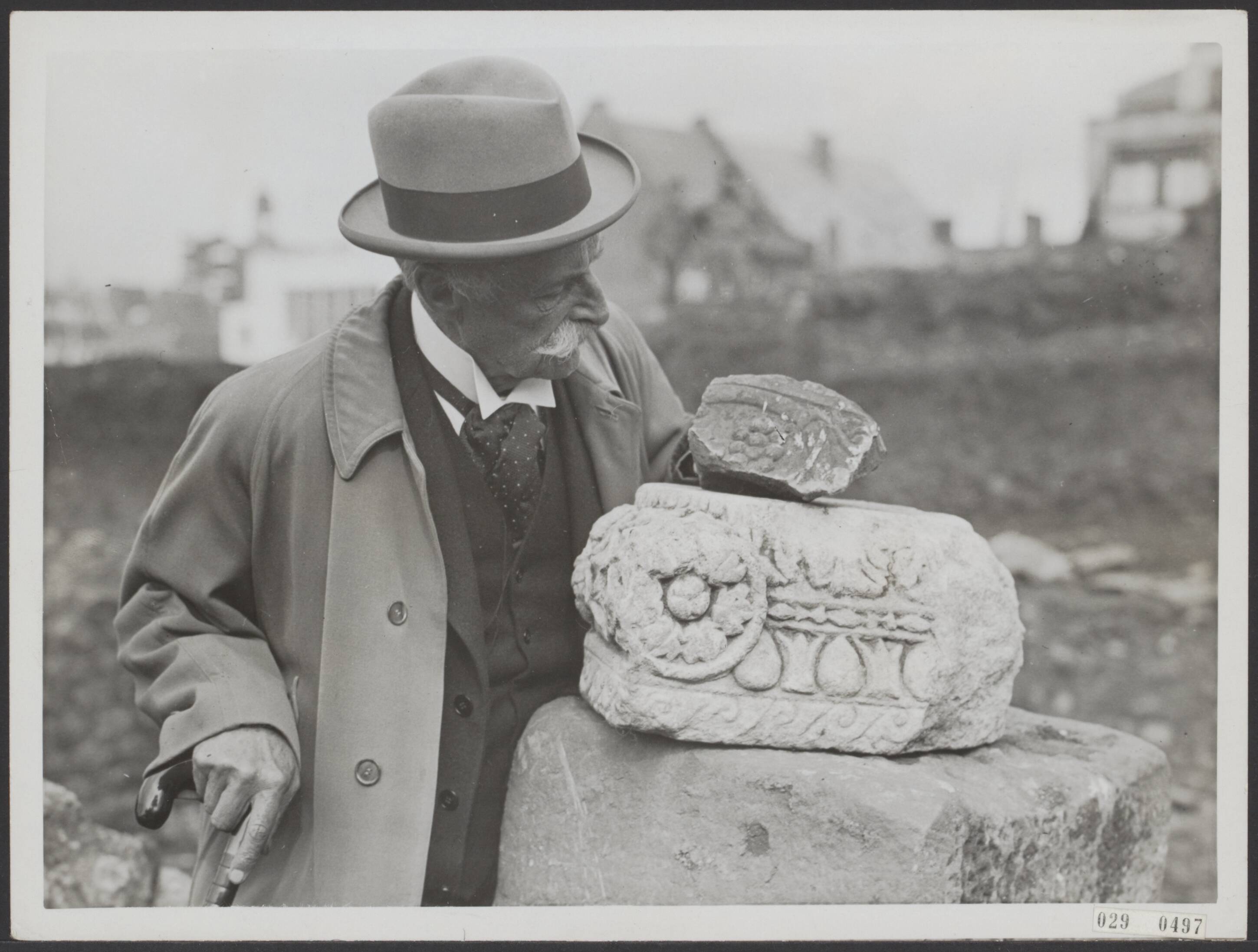 Tijdens de ontginning van gemeentegronden te Heerlen op de hoek tussen de Kruisstraat en de Nieuwe Lindenstaaat, is men op overblijfselen van een romeinse vesting gestoten. Onder leiding van dr. H.J. Beckers worden thans opgravingen gedaan. Zuilfragmenten, een verwarmingsinstallatie en fragmenten van een badhuis werden blootgelegd. Dr. H. J. Beckers bestudeert een der zuilfragmenten