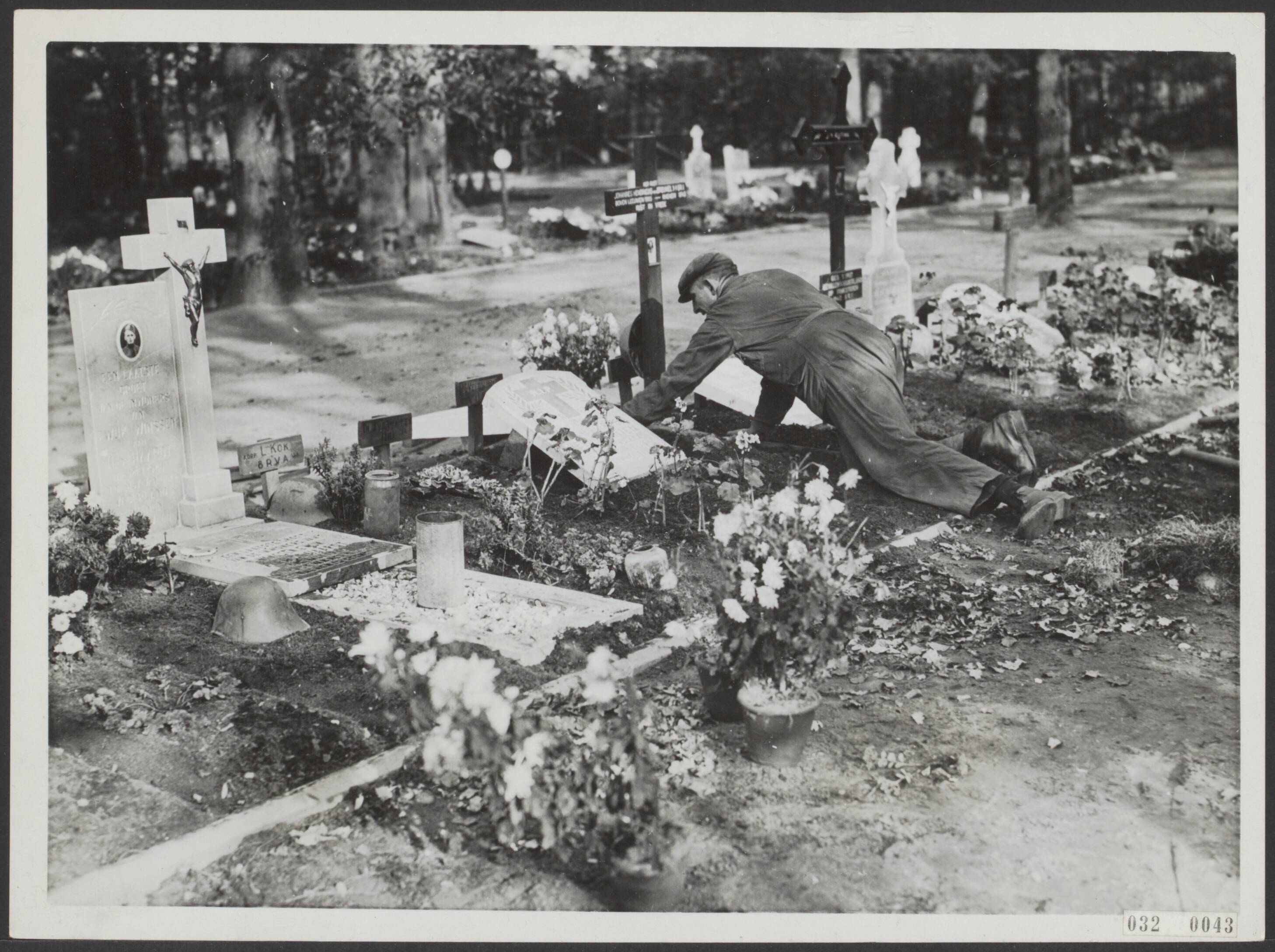Het soldatenkerkhof op de Grebbeberg wordt nog eens extra nagezien en de graven van frisse aarde en bloemen voorzien, in verband m...