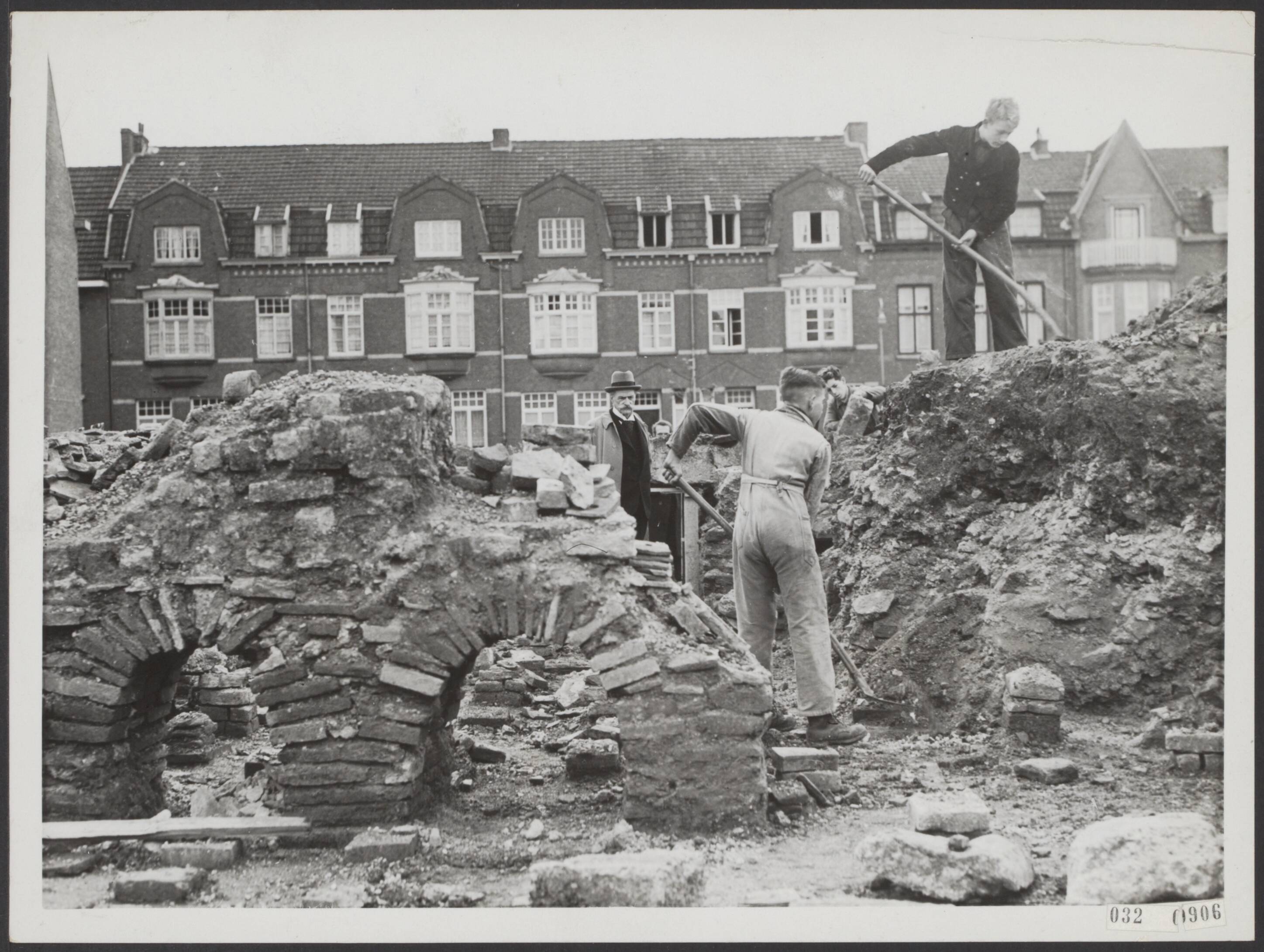 Tijdens de ontginning van gemeentegronden te Heerlen op de hoek van de Kruisstraat en de nieuwe Lindenstraat, is men op de overblijfselen van een Romeinse vesting gestoten. Onder leiding van dr. H.J. Beckers worden thans opgravingen gedaan. Zuilfragmenten, een verwarmingsinstallatie en fragmenten werden blootgelegd. Hier ondergrondse verwarmingskanalen (links)
