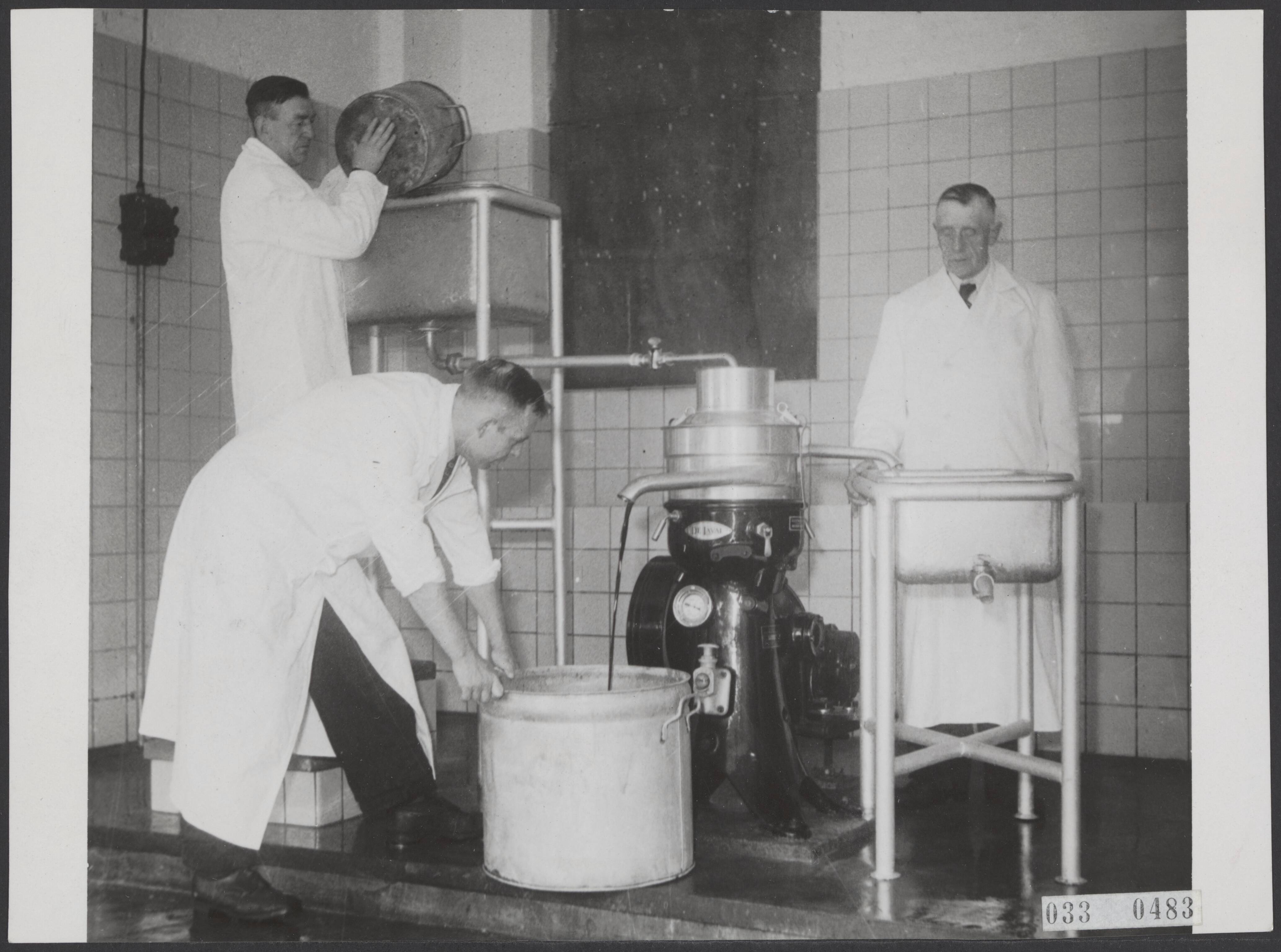 Nieuwe grondstoffen voor de worstfabricage en banketbakkerij. Op het Rotterdamse abattori is een installatie gereedgekomen voor de bloedplasmabereiding, dat gebruikt wordt als bindmiddel uitgebreide beschrijving van de fabricage achterop de foto, red.