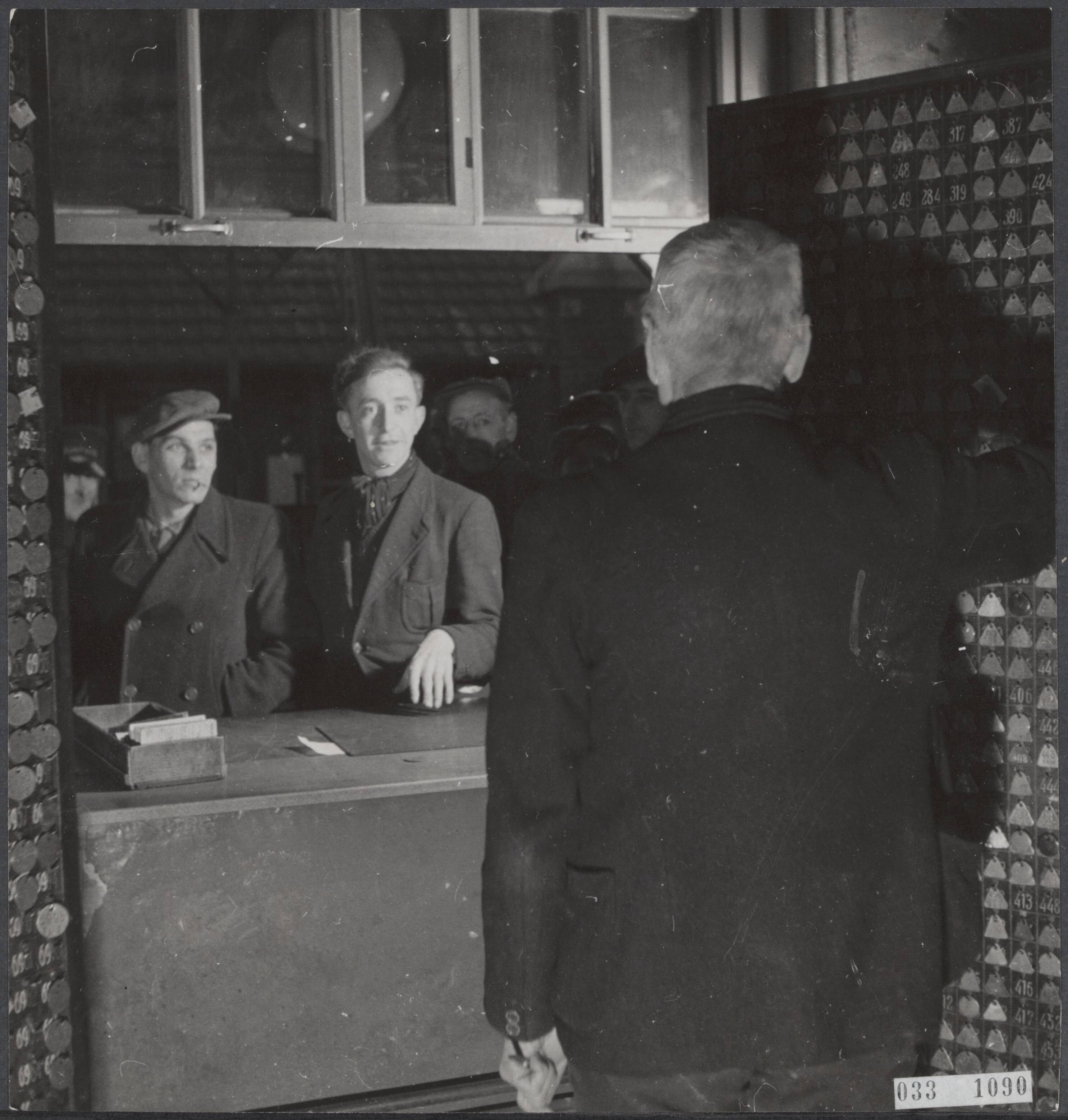 Kolenmijnen Limburg. Bij binnenkomst ontvangt iedere mijnwerker een genummerde penning bij de portiersloge, die hij op zijn werkkleding bevestigt. Dit controlesysteem zorgt ook voor identificatie in het geval van ongelukken