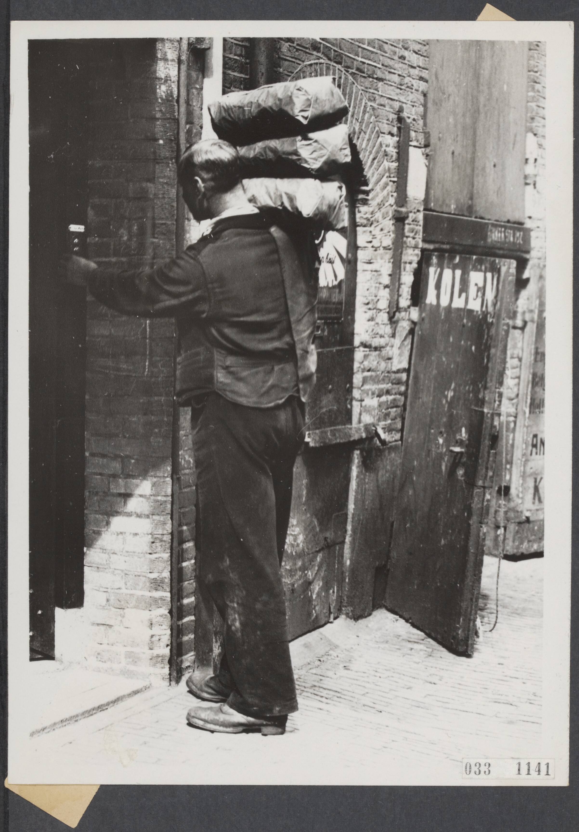 Bijschrift foto "Er is goed nieuws voor de huisvrouwen, want er zijn weer steenkolen te krijgen. De kolenboer kan zijn werk hervatten, zij het dan met leveranties tot een maximum van 20 percent"