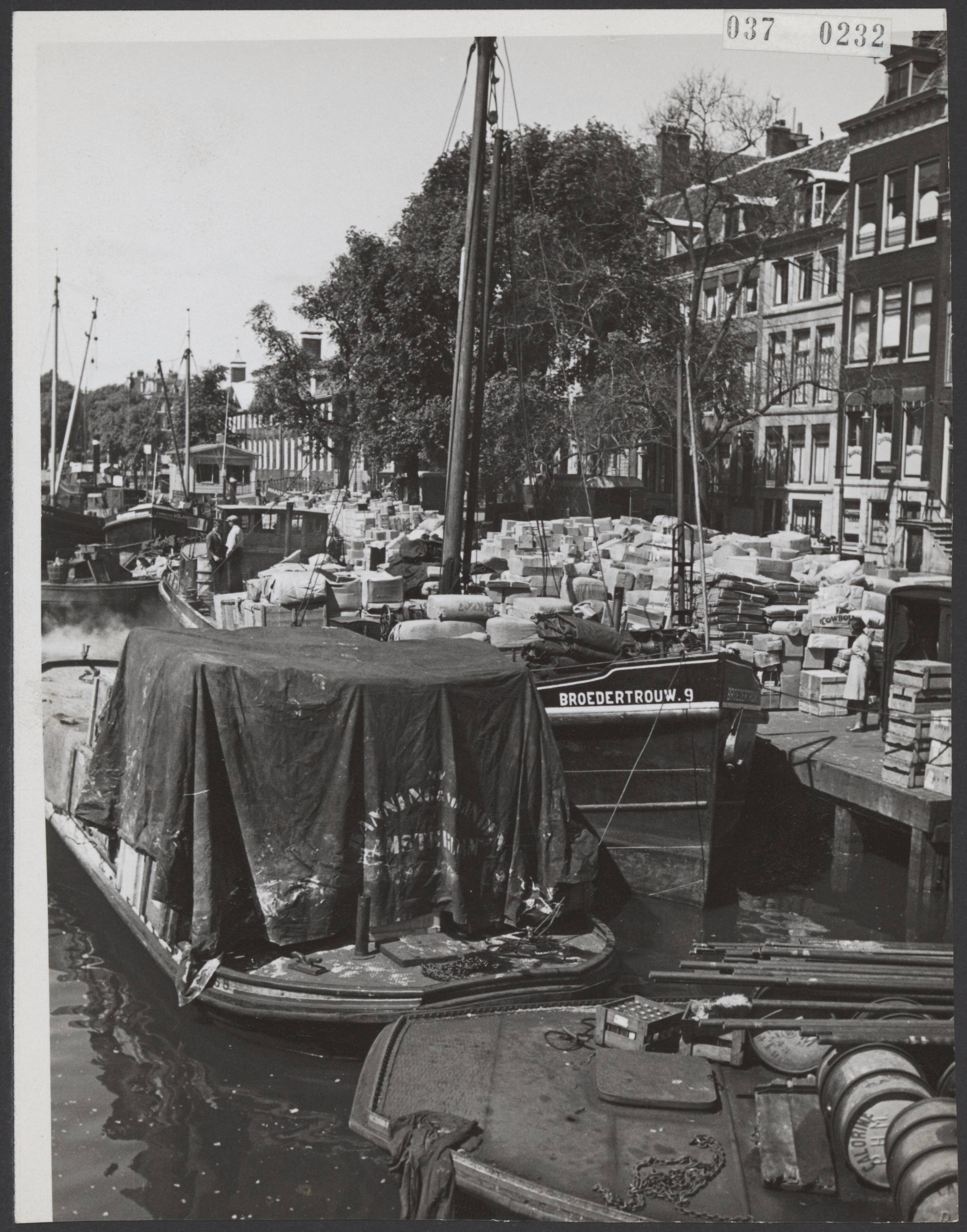 Binnenvaart weer aan de slag. Bedrijvigheid aan de Amstel bij de Magere Brug