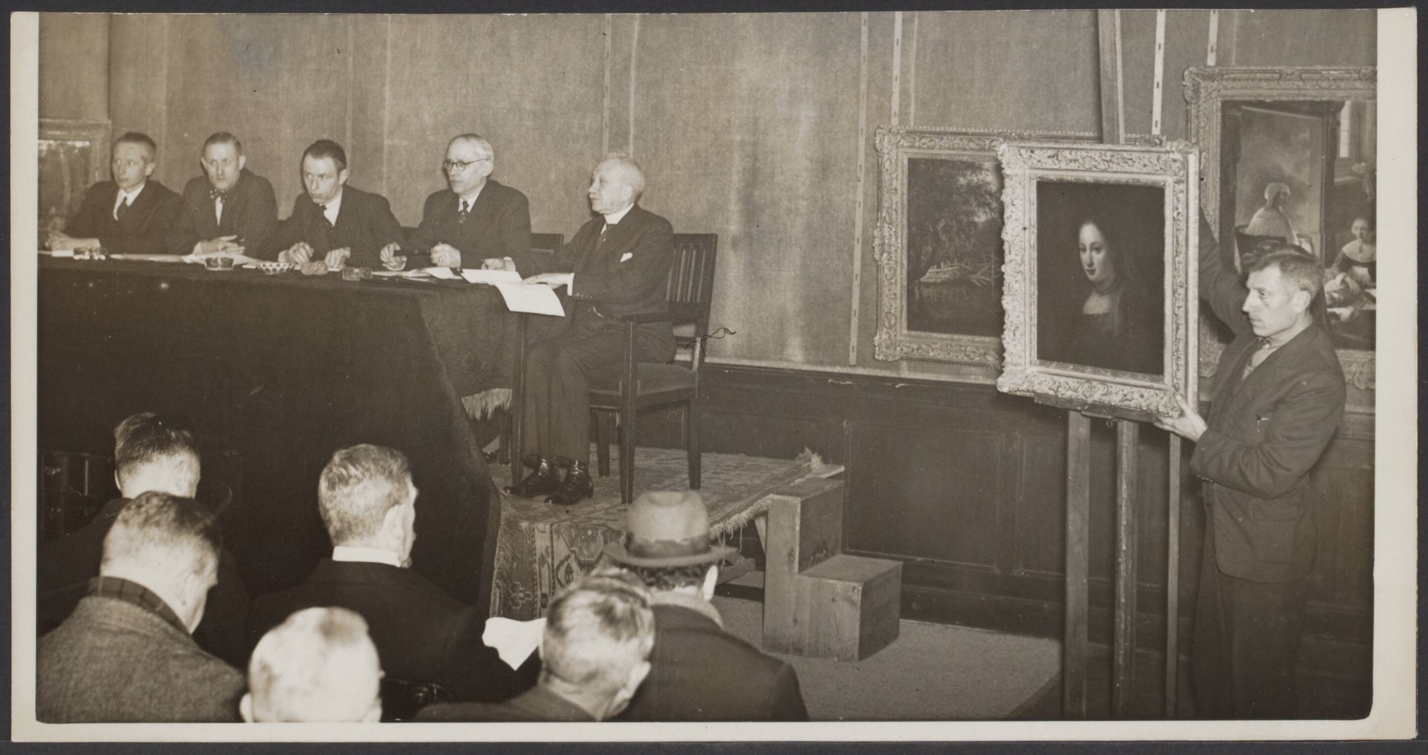 Kunstveiling te Rotterdam. Een schilderij van Rembrandt "Portret van een jong meisje met sluier" werd verkocht voor slechts f 3000,-
