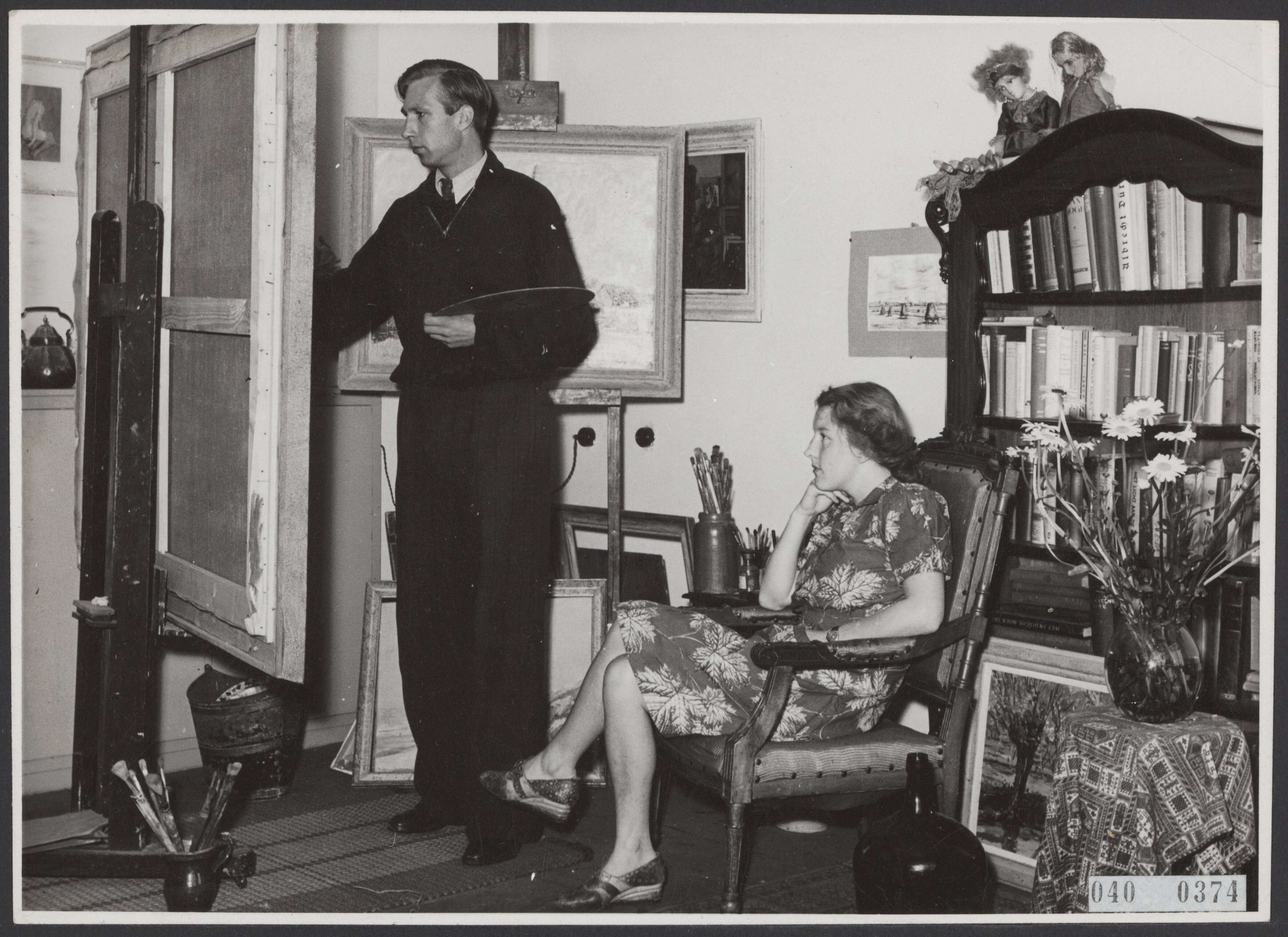 Aad (Ad) Kikkert met zijn vrouw. Beide zijn kunstschilders