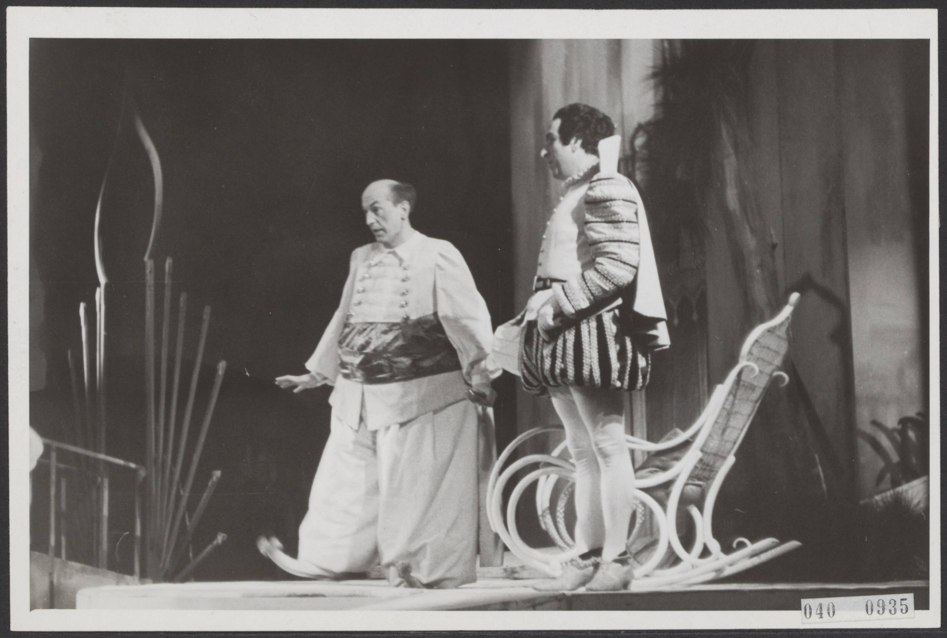 Scene uit de opera "Entführung aus dem Serail" van Mozart i.vm. de Mozartherdenking in de Stadsschouwburg te Den Haag. De voorstelling werd bijgewoond door de Rijkscommissaris, zijn vrouw en meerdere autoriteiten