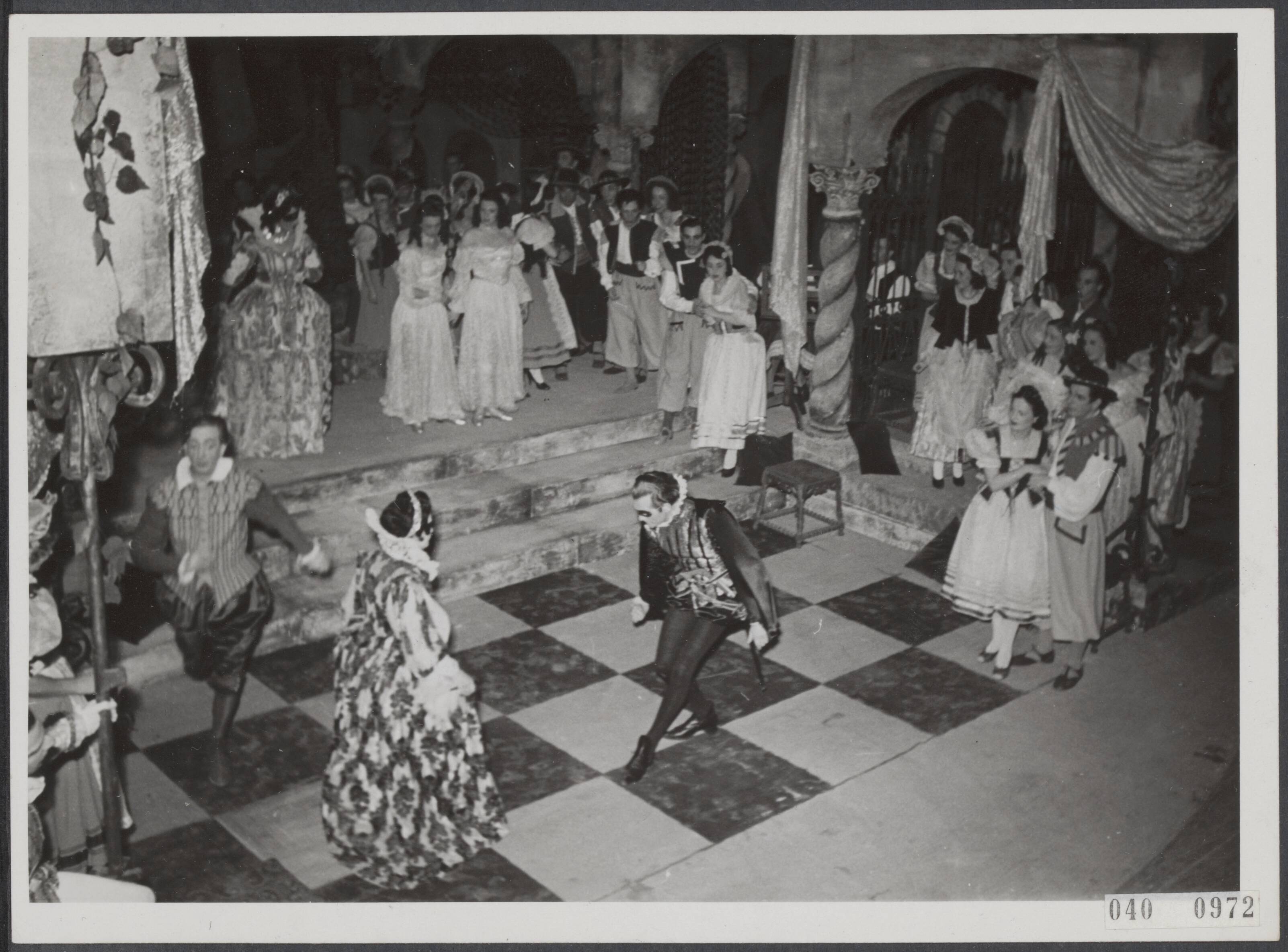 Uitvoering van de opera "Don Givovanni" van Mozart bij de opening van het Deutsches Theater in den Niederlanden te Den Haag op 19 november 1942. Enscenering door dr. Wolfgang Nufer, muzikale leiding Wilhelm Franzen, decor Ernst Rufer