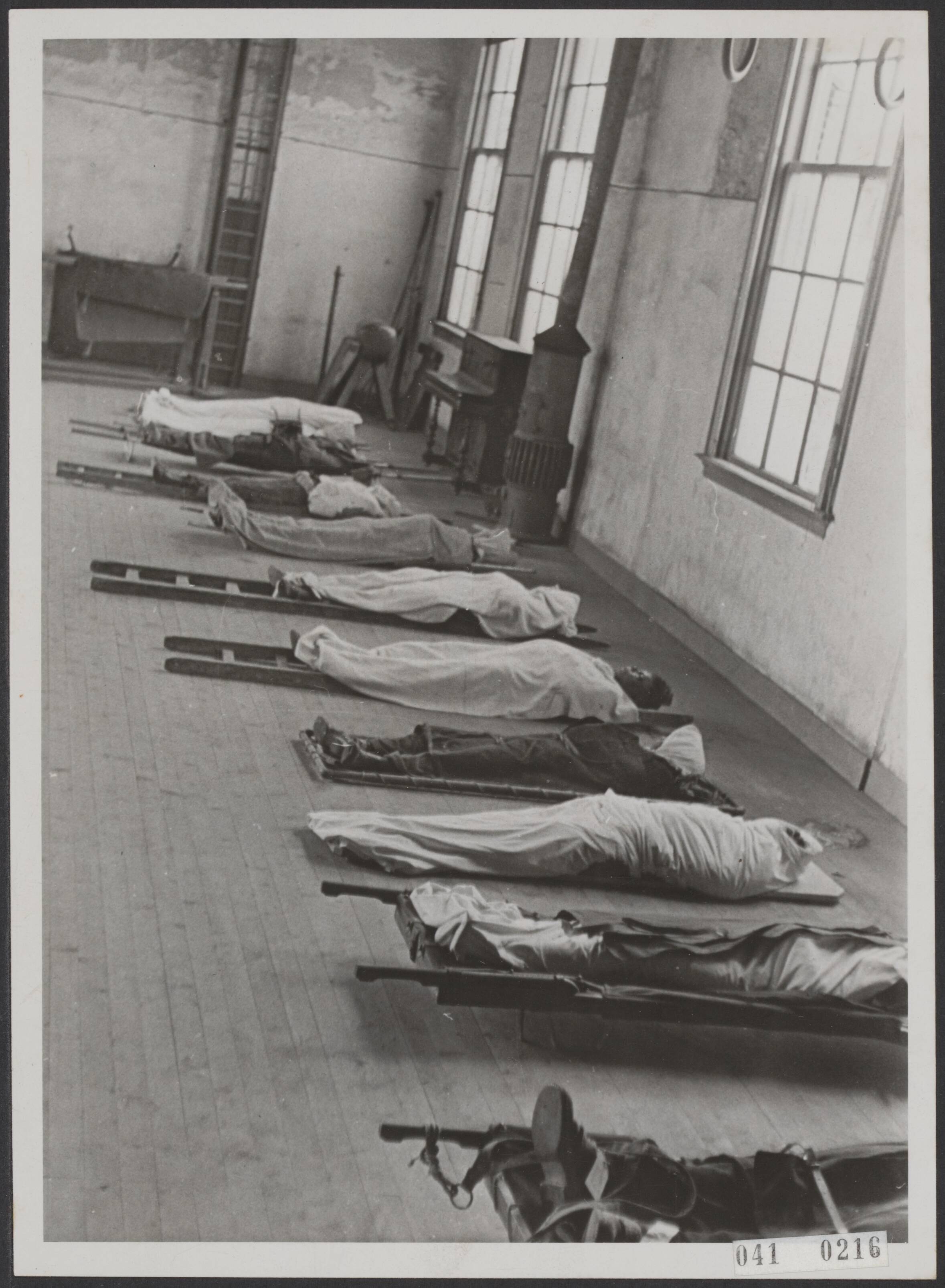 Een deel van de slachtoffers van een geallieerd bombardement op een school te Brielle. Veertien leerlingen en acht volwassenen kwamen hierbij om. Vier leerlingen en vijf volwassen raakten zwaargewond.