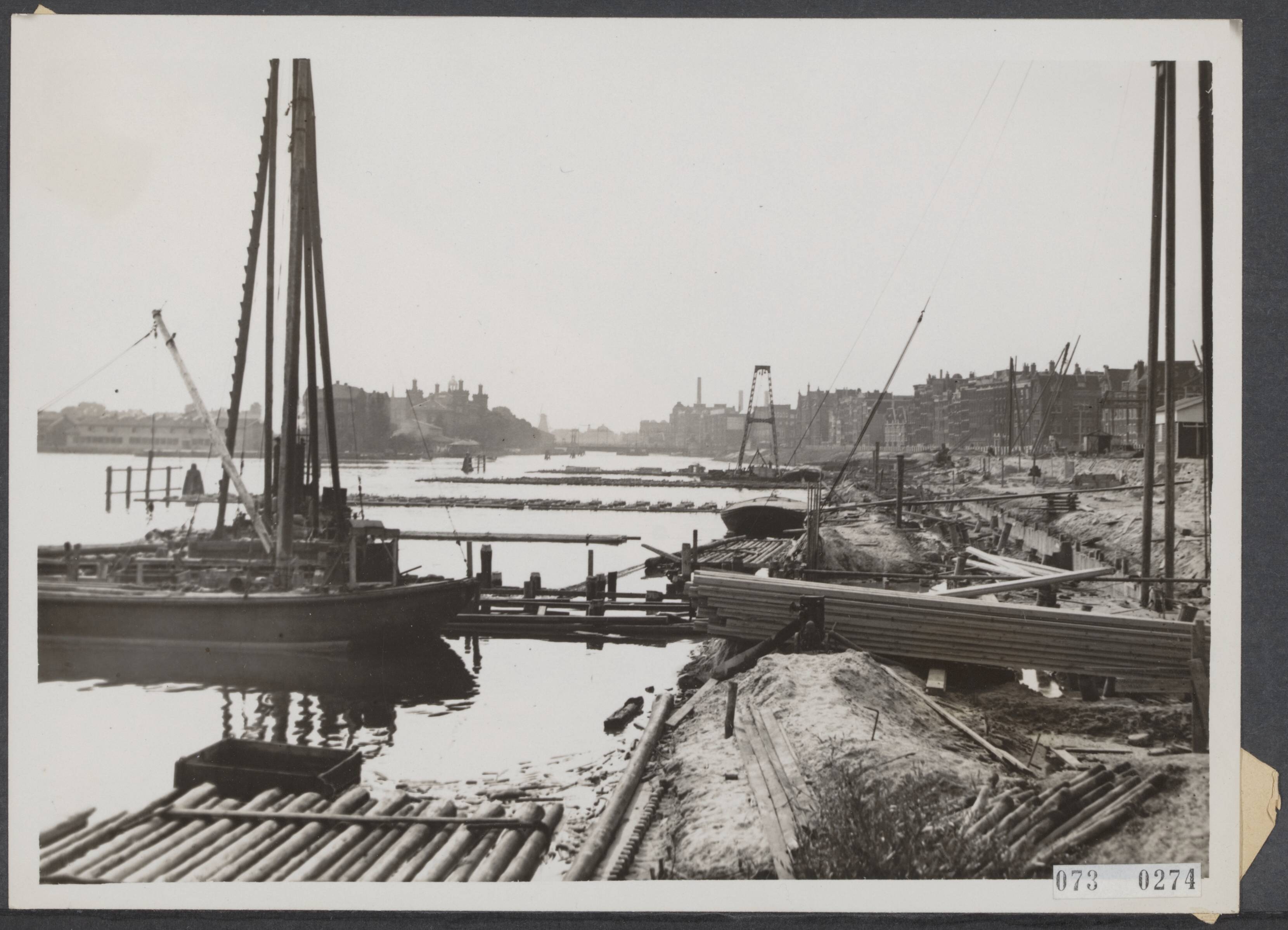 Een aanwinst voor de Amsterdamse haven. Ten behoeve van de binnenvaart worden bij de verbreding van de Prins Hendrikkade vier aanlegsteigers gebouwd, waarvoor het heiwerk in volle gang is
