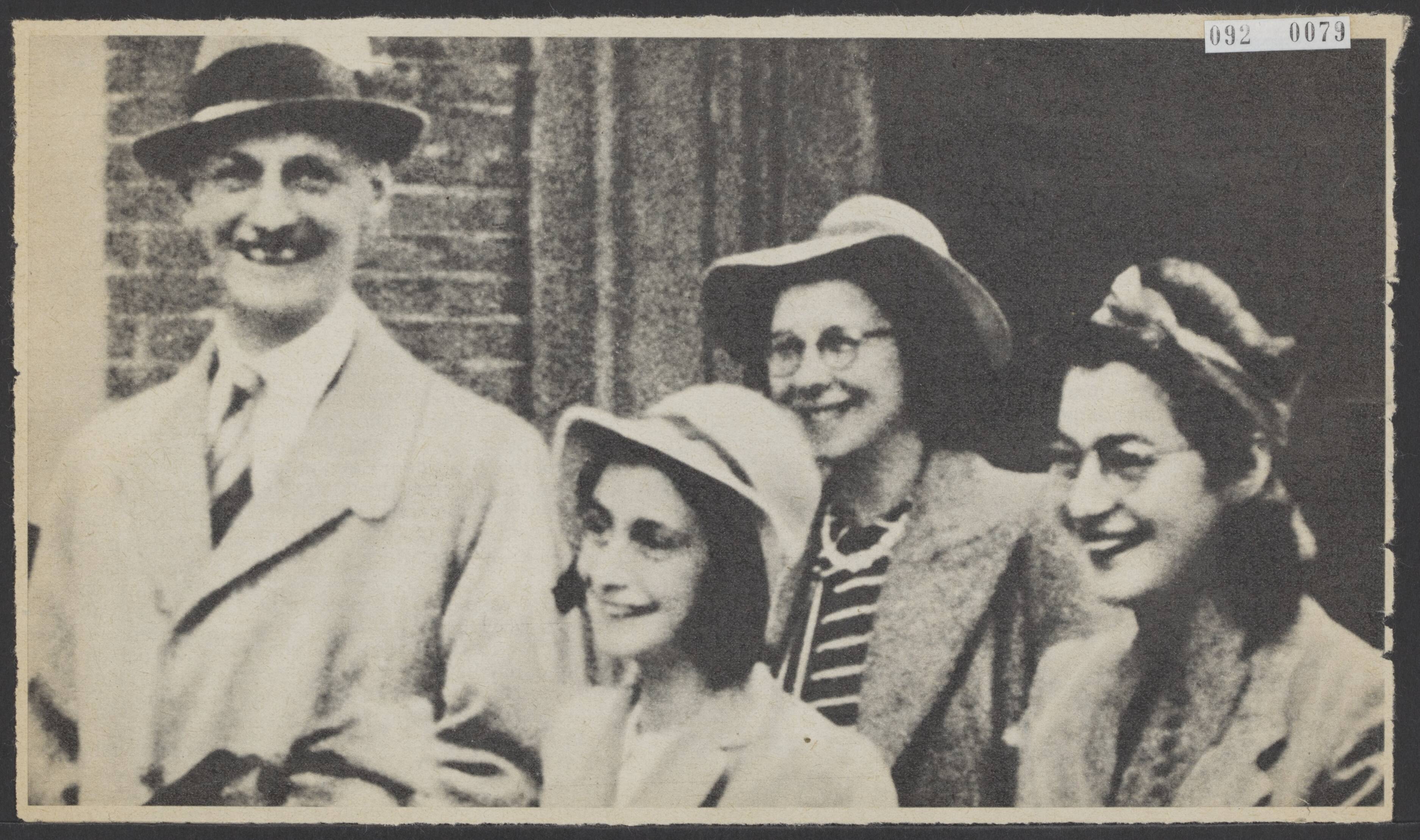 Anne Frank met zuster en ouders knipsel uit een tijdschrift