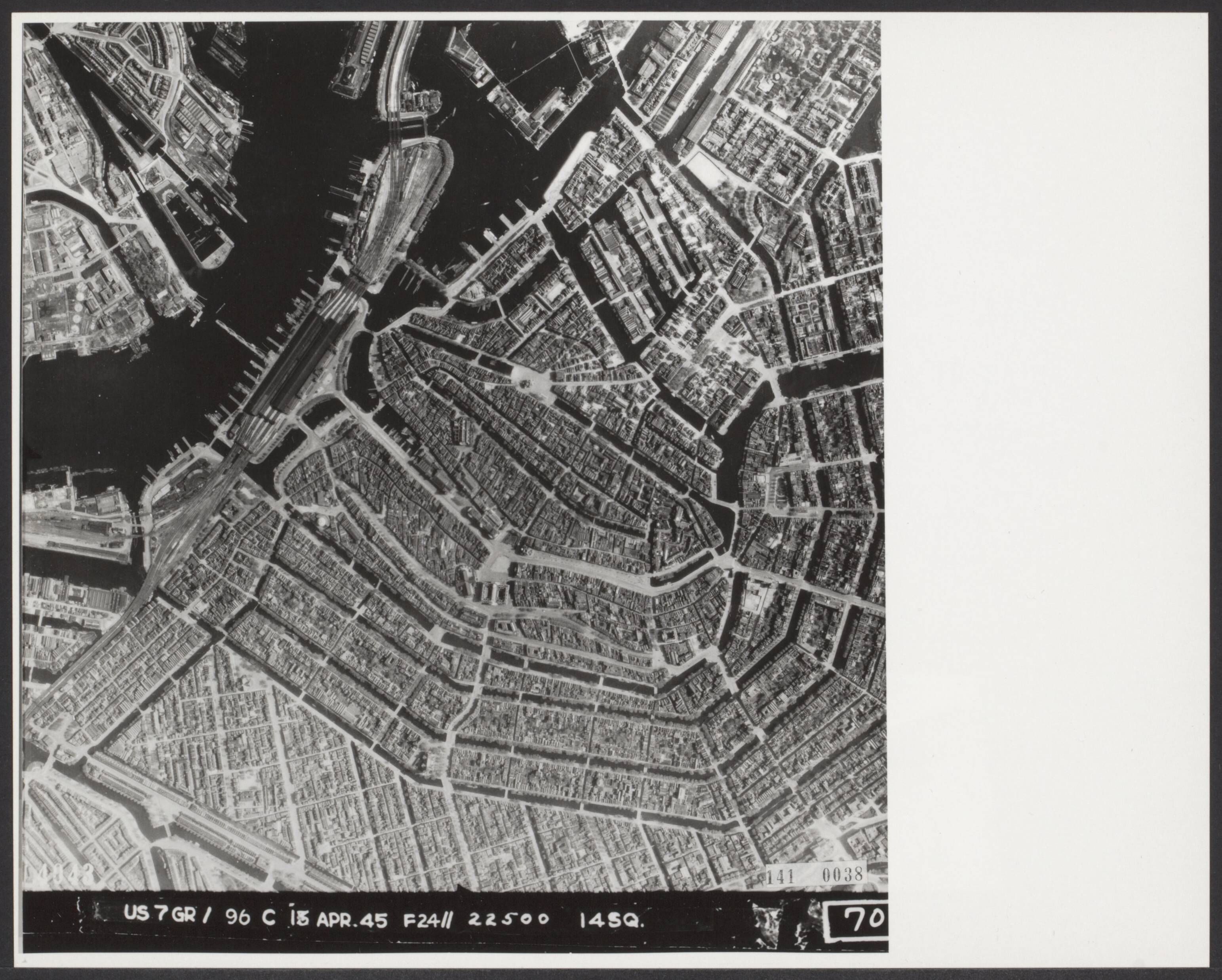 Luchtopname. Amsterdam met de gedeeltelijk gesloopte Joodse wijk