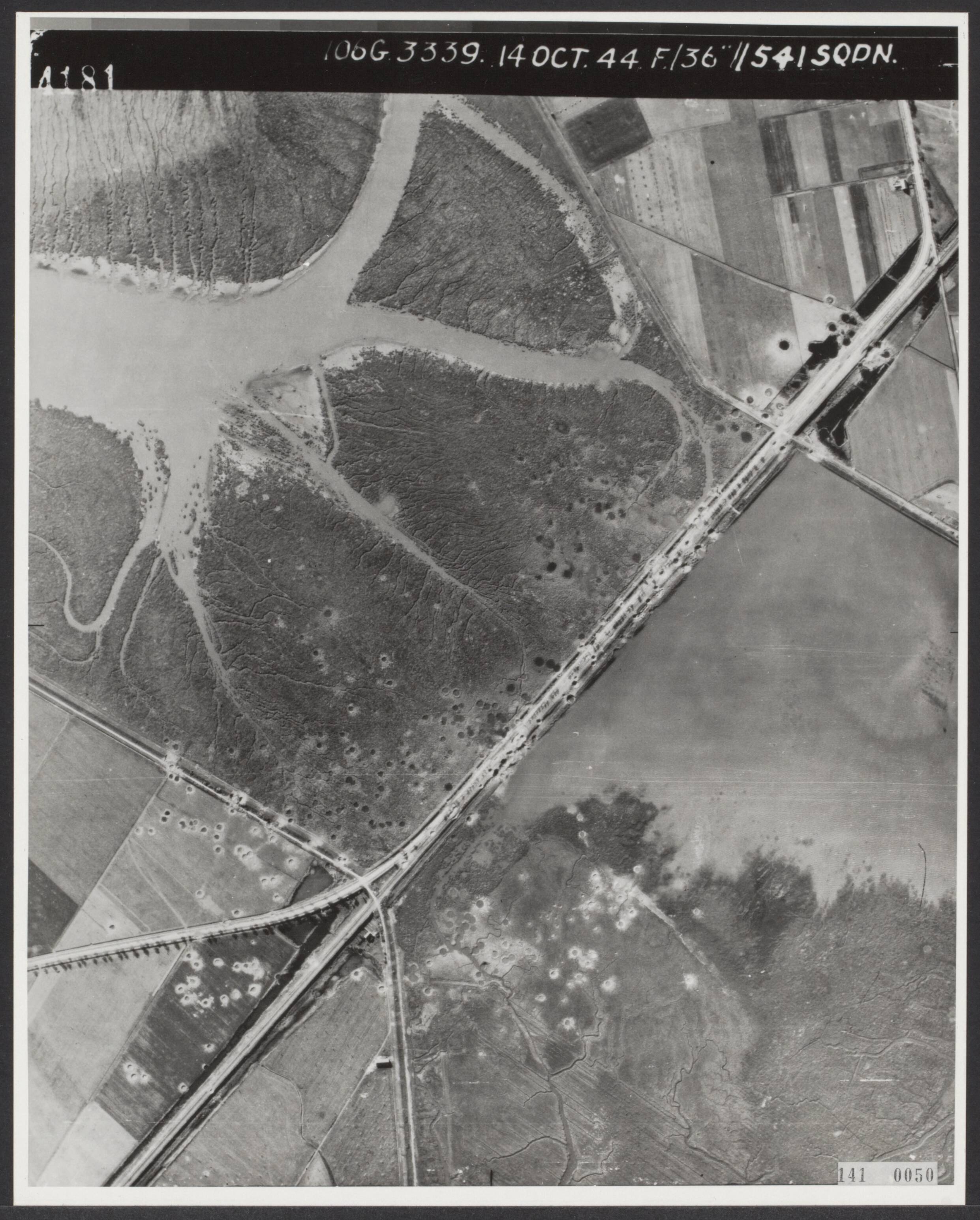 Luchtopname. De gebombardeerde Sloedam