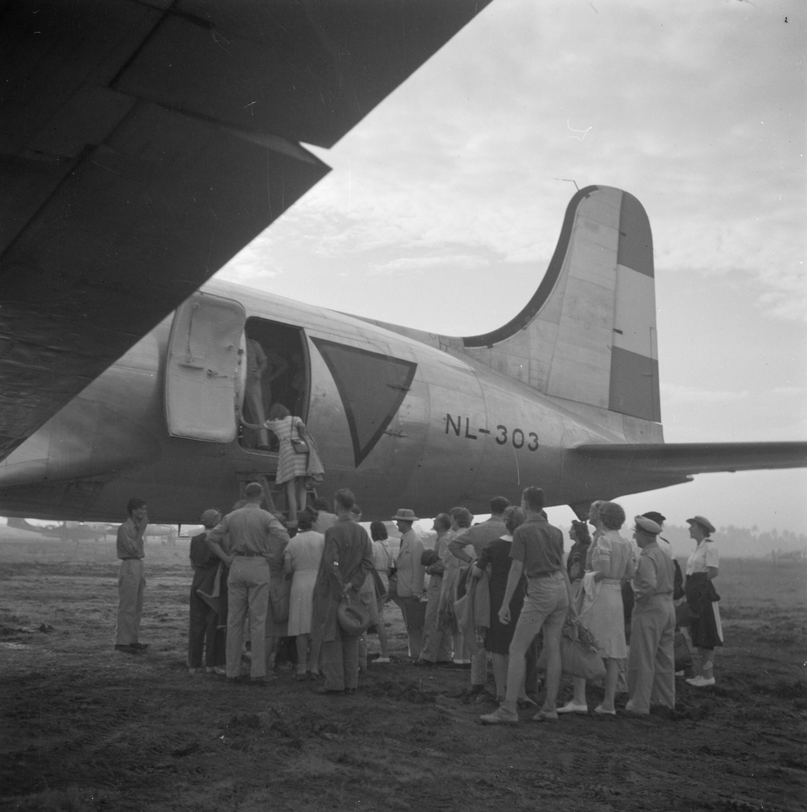 Repatrianten op Kemajoran, het vliegveld van Batavia