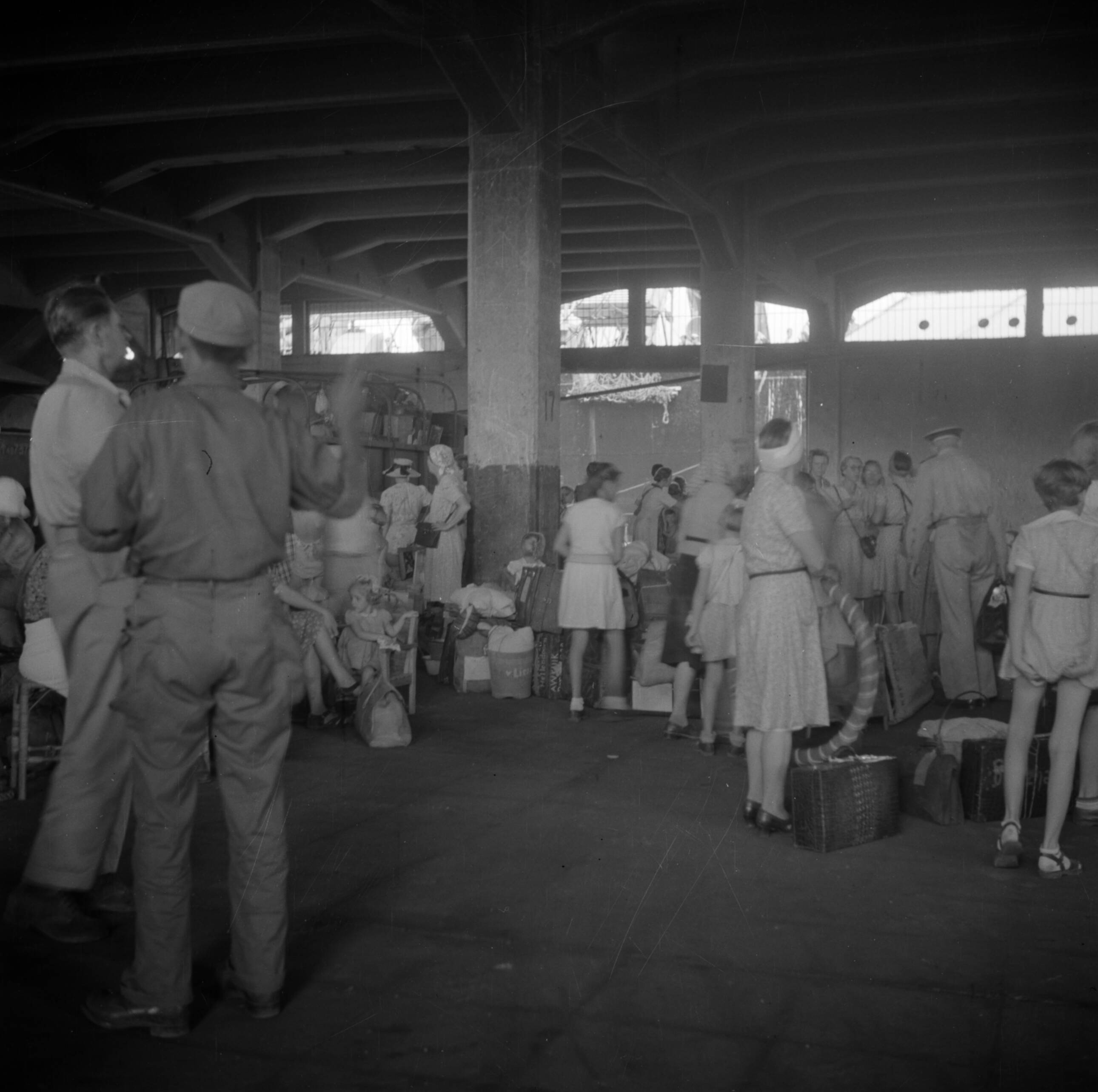 Repatrianten in Tandjong Priok afwachting van hun vertrek