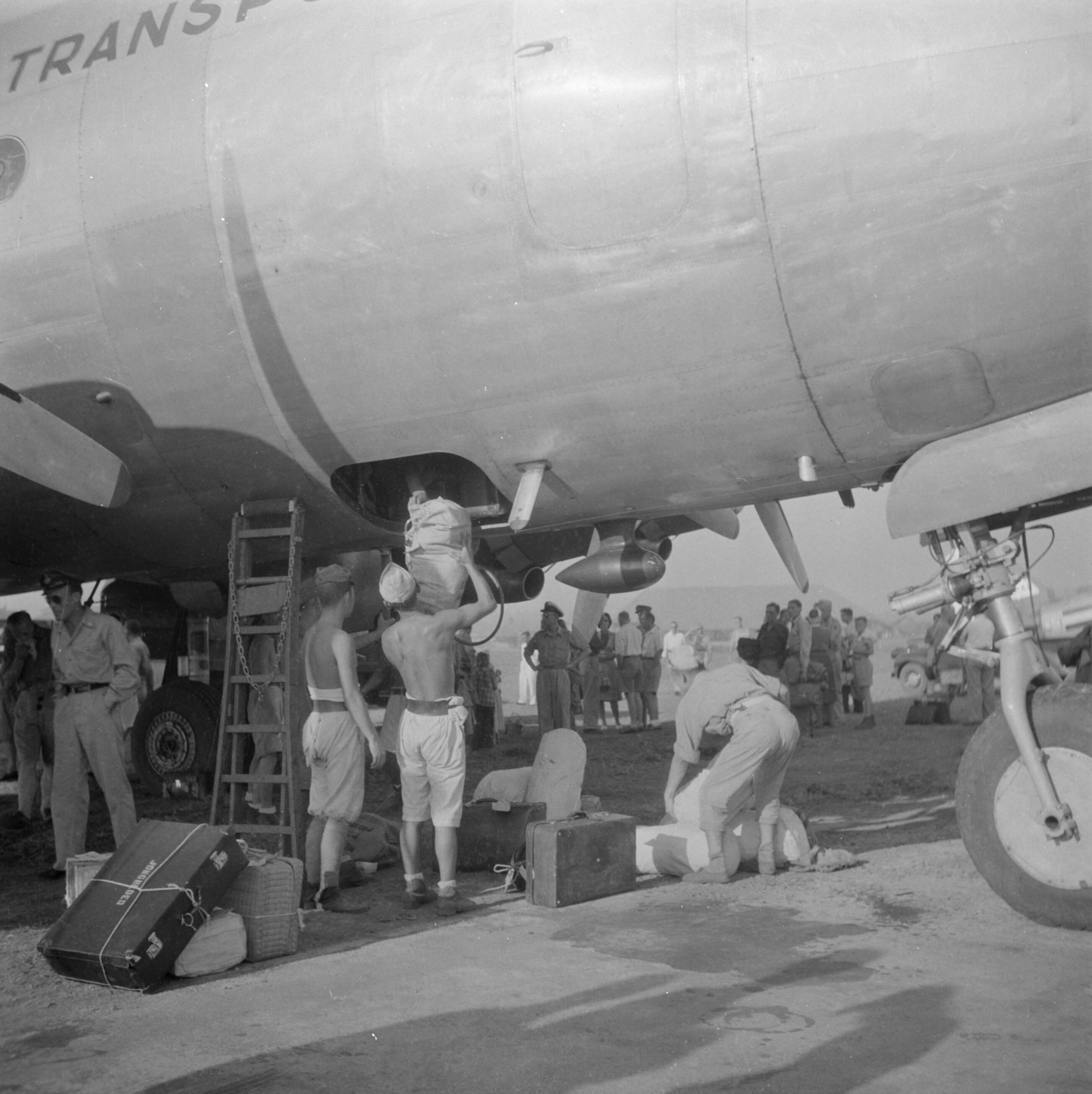 Het inladen van een vliegtuig op vliegveld Kemajoran