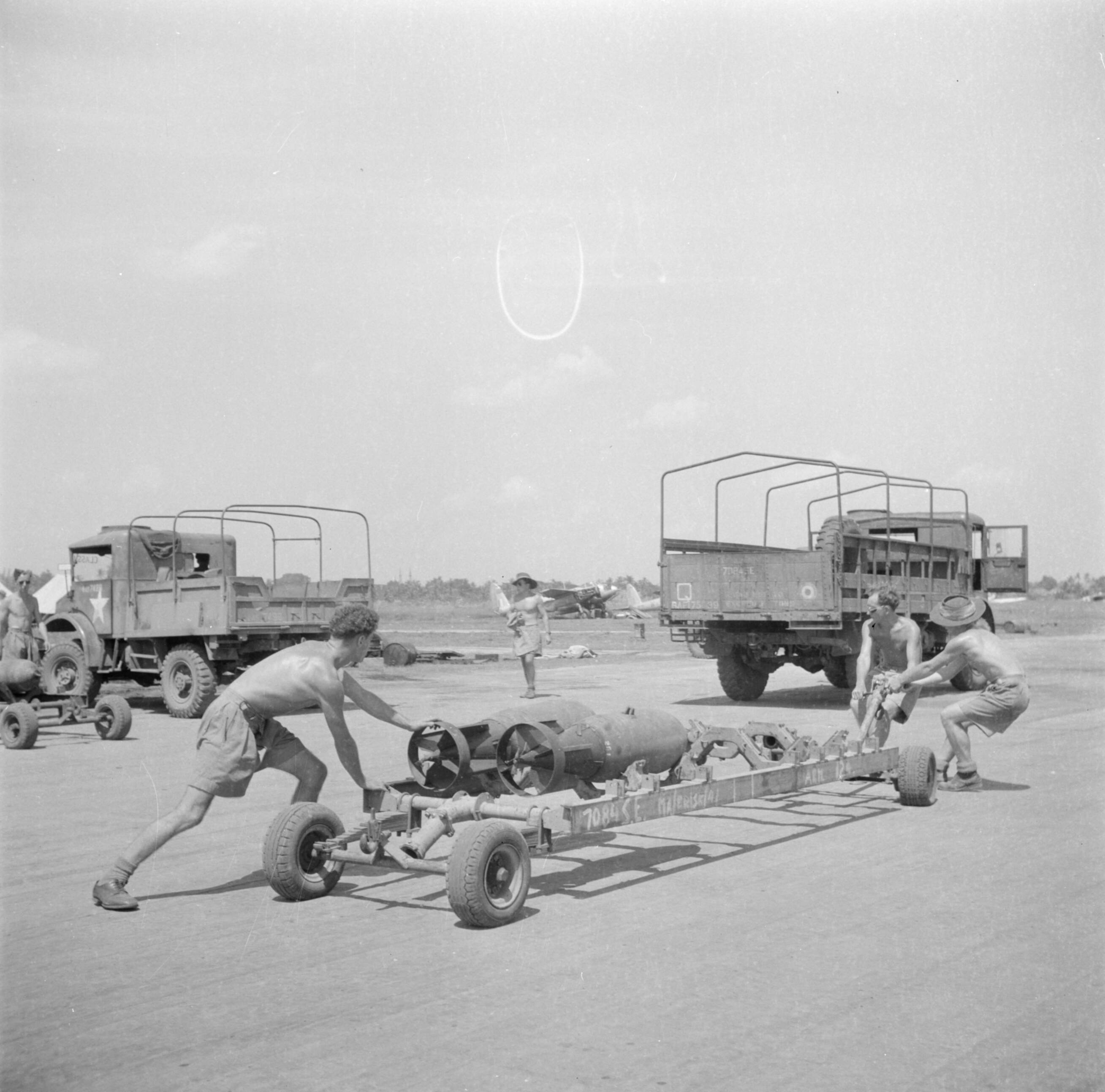 Vervoer van vliegtuigbommen op het vliegveld Kemajoran