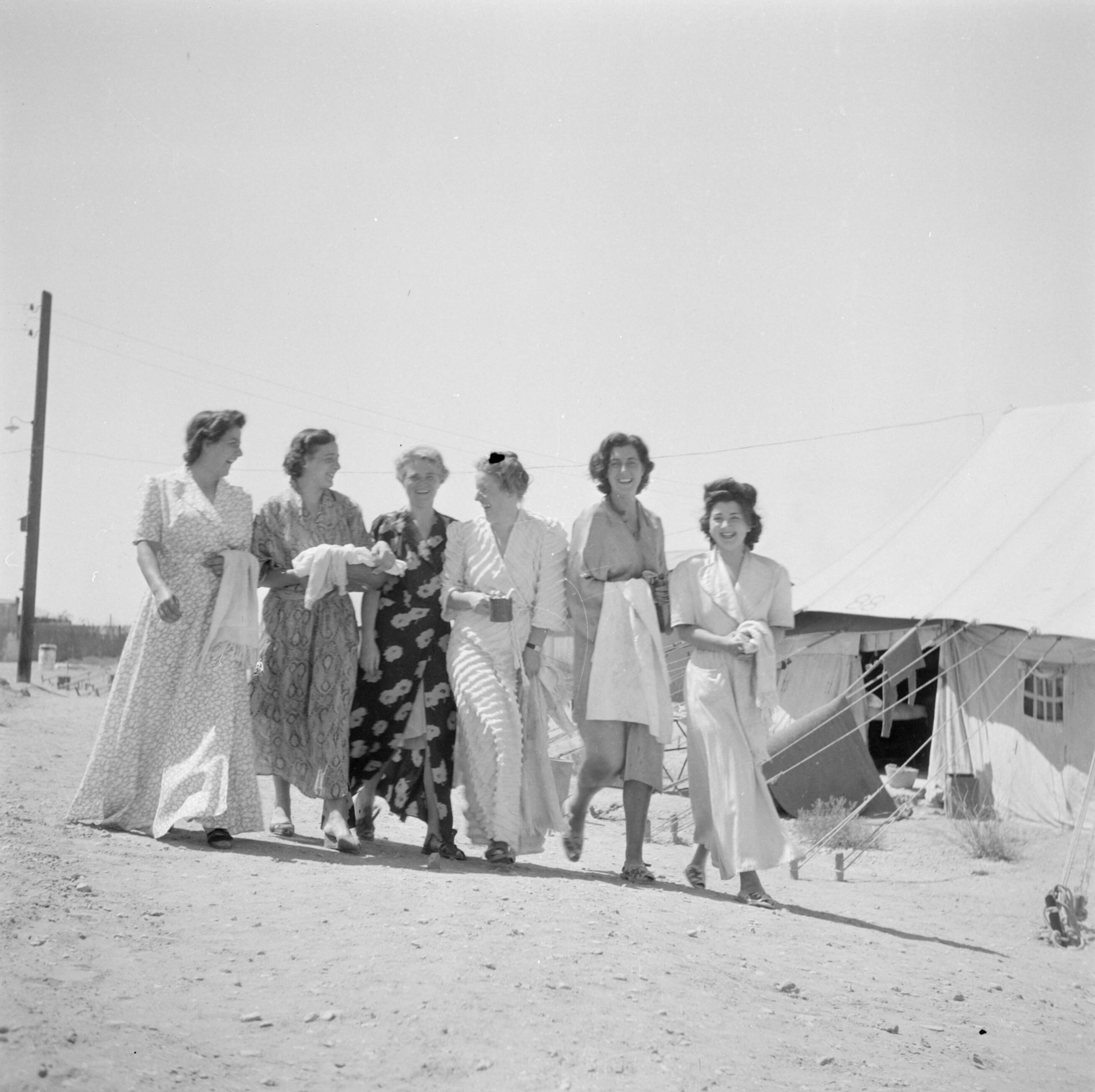 Leden van het Vrouwen Hulp Korps in Ataka op weg naar de douches