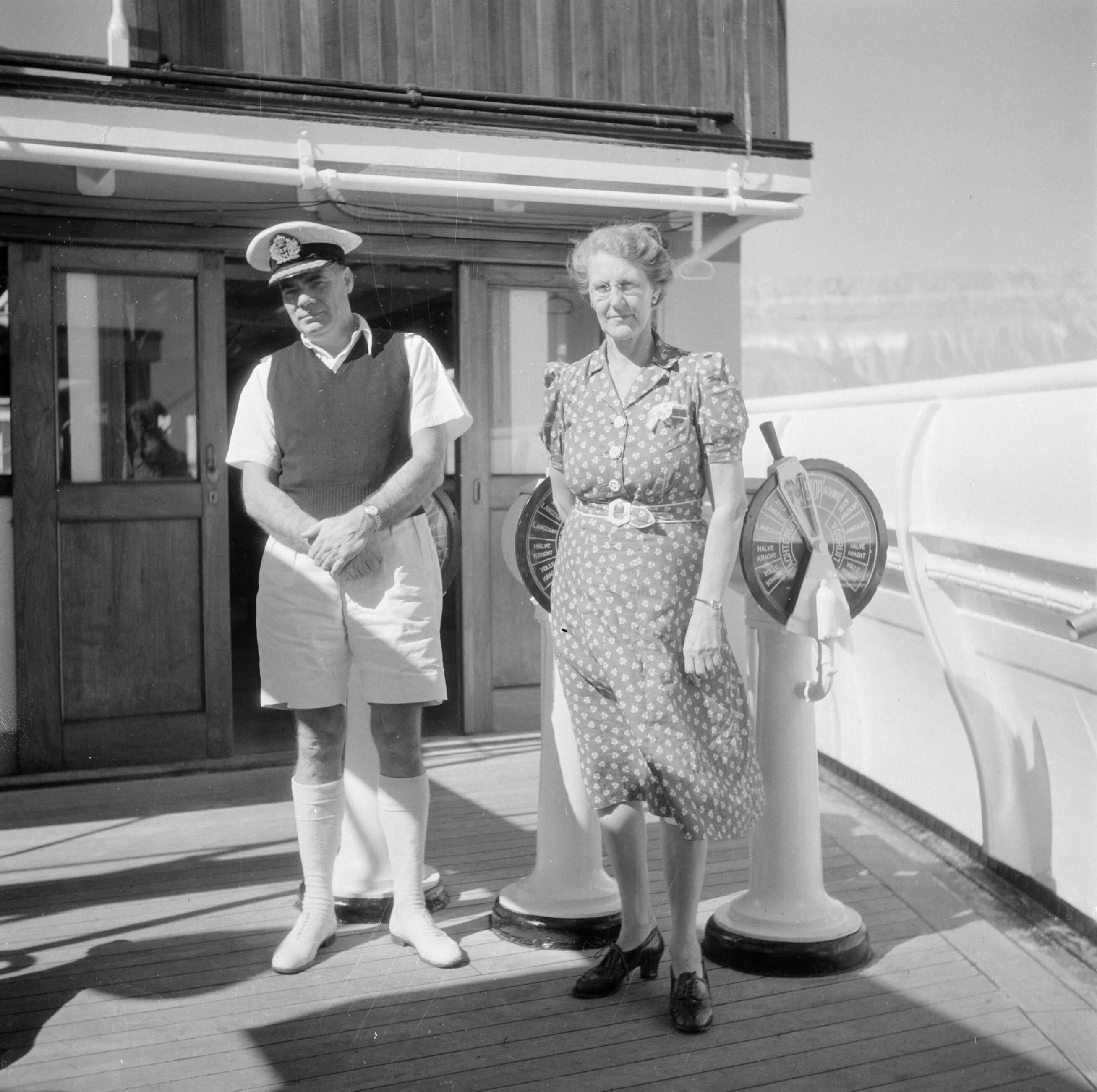 Een scheepsofficier en een vrouw aan boord van een schip in Ataka