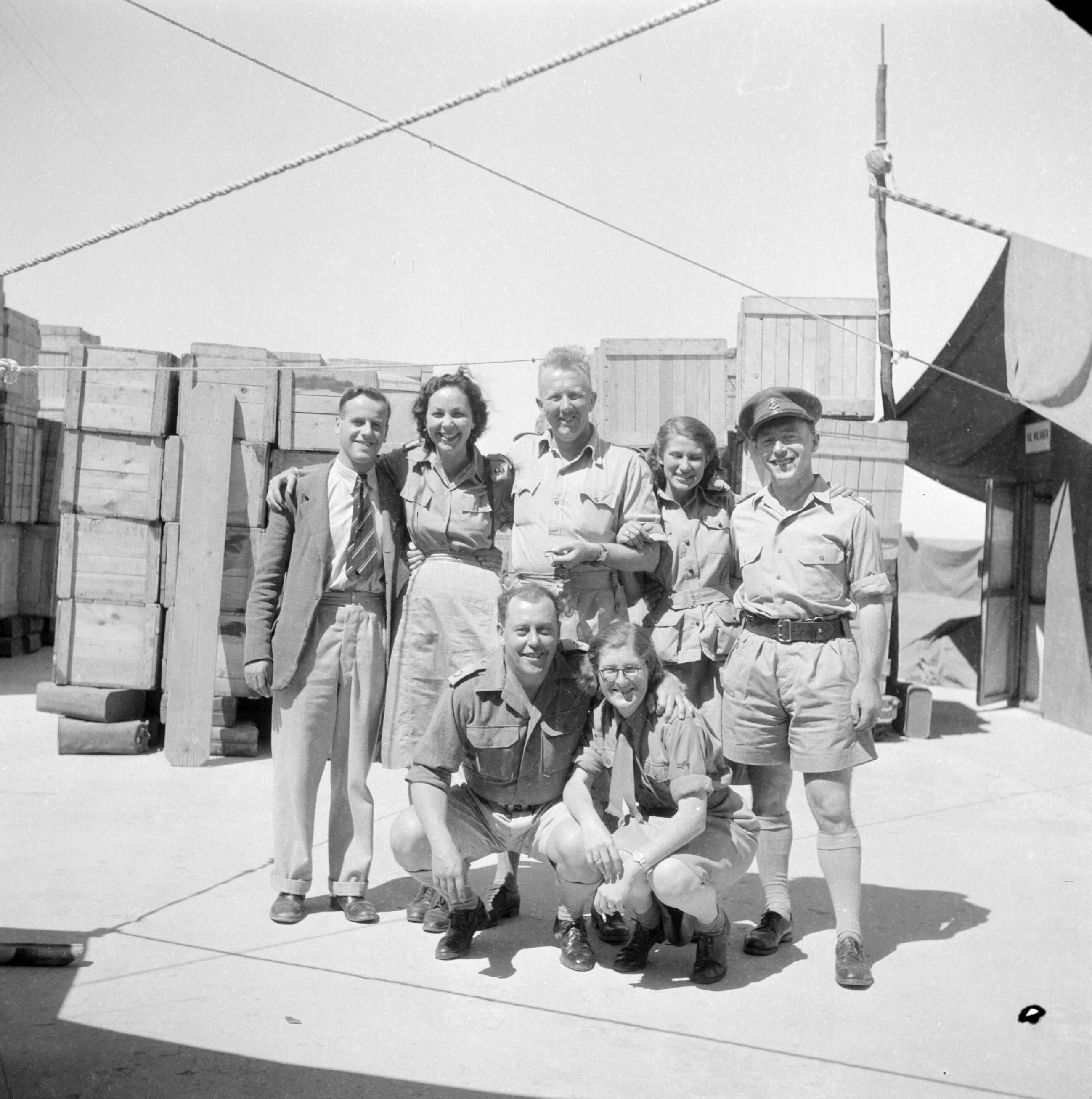 Leden van het Vrouwelijk Hulp Korps en aantal mannen poseren in Ataka voor de fotograaf