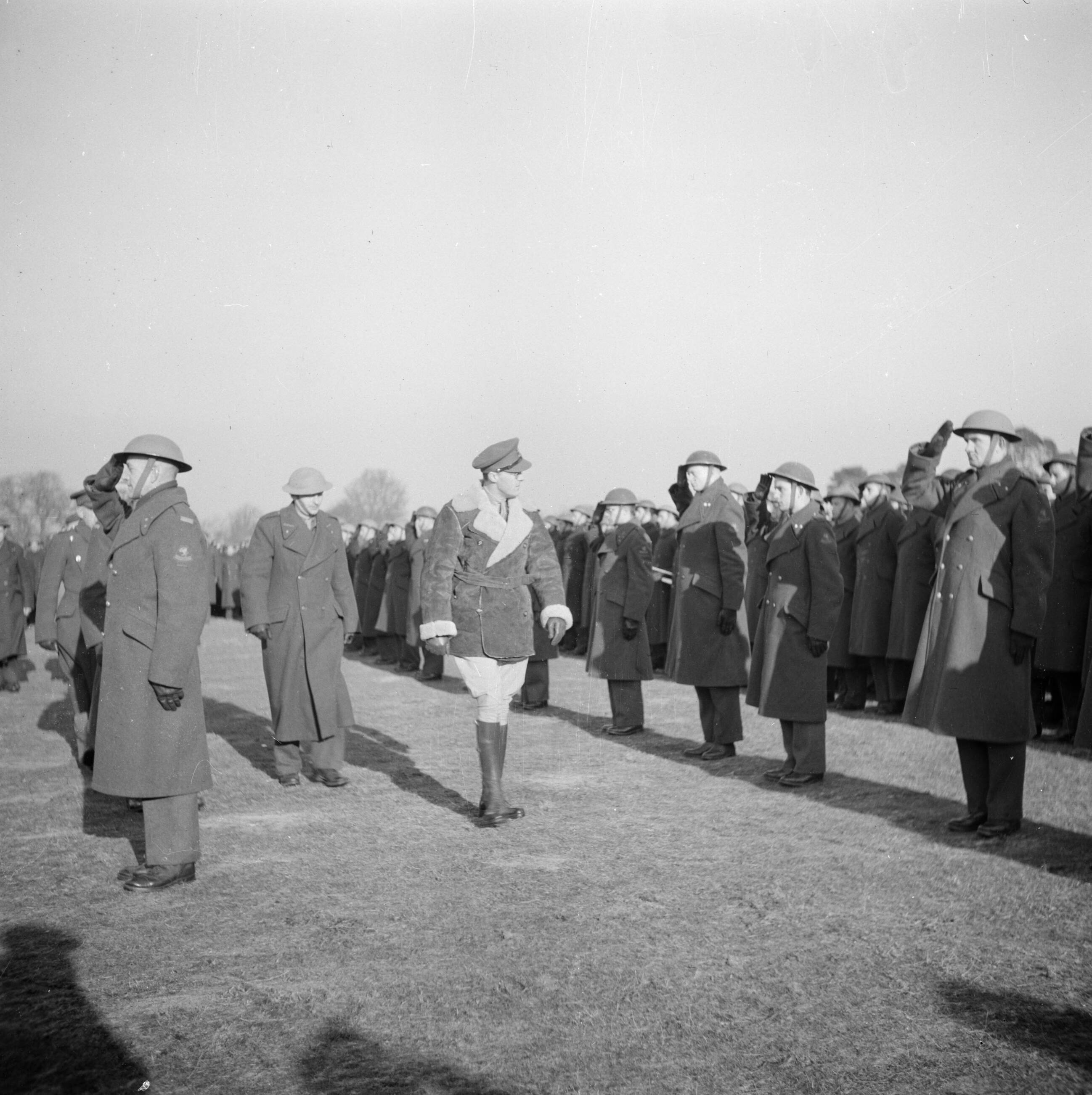 Prins Bernhard inspecteert een eenheid Nederlandse militairen