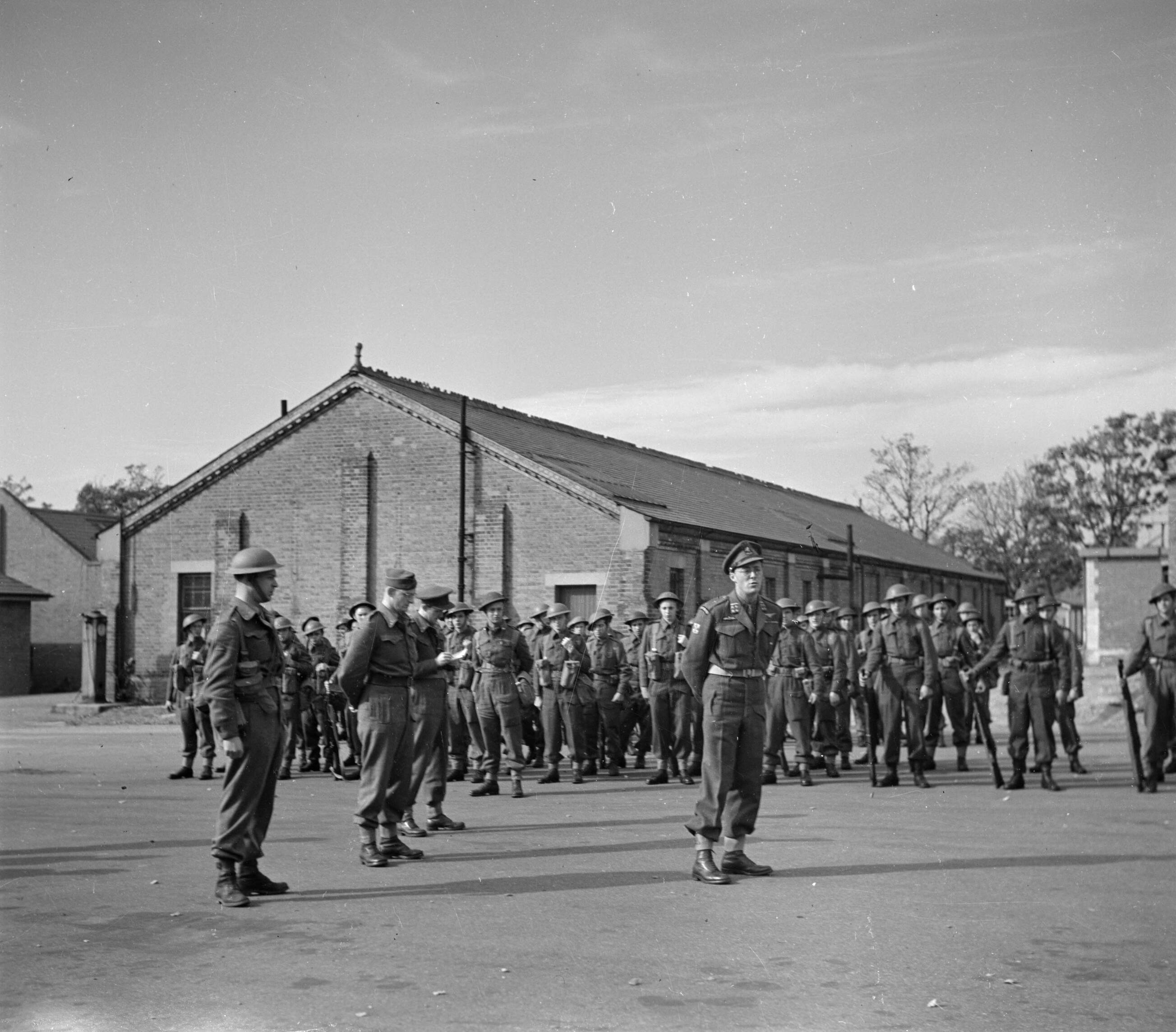 Prins Bernhard spreekt de troepen toe