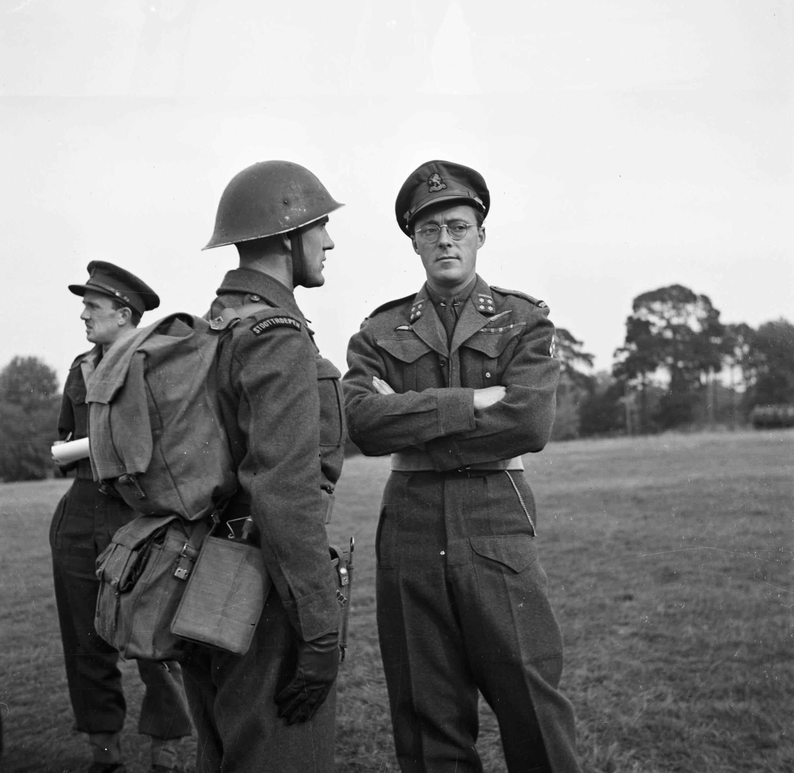 Prins Bernhard in gesprek met een militair