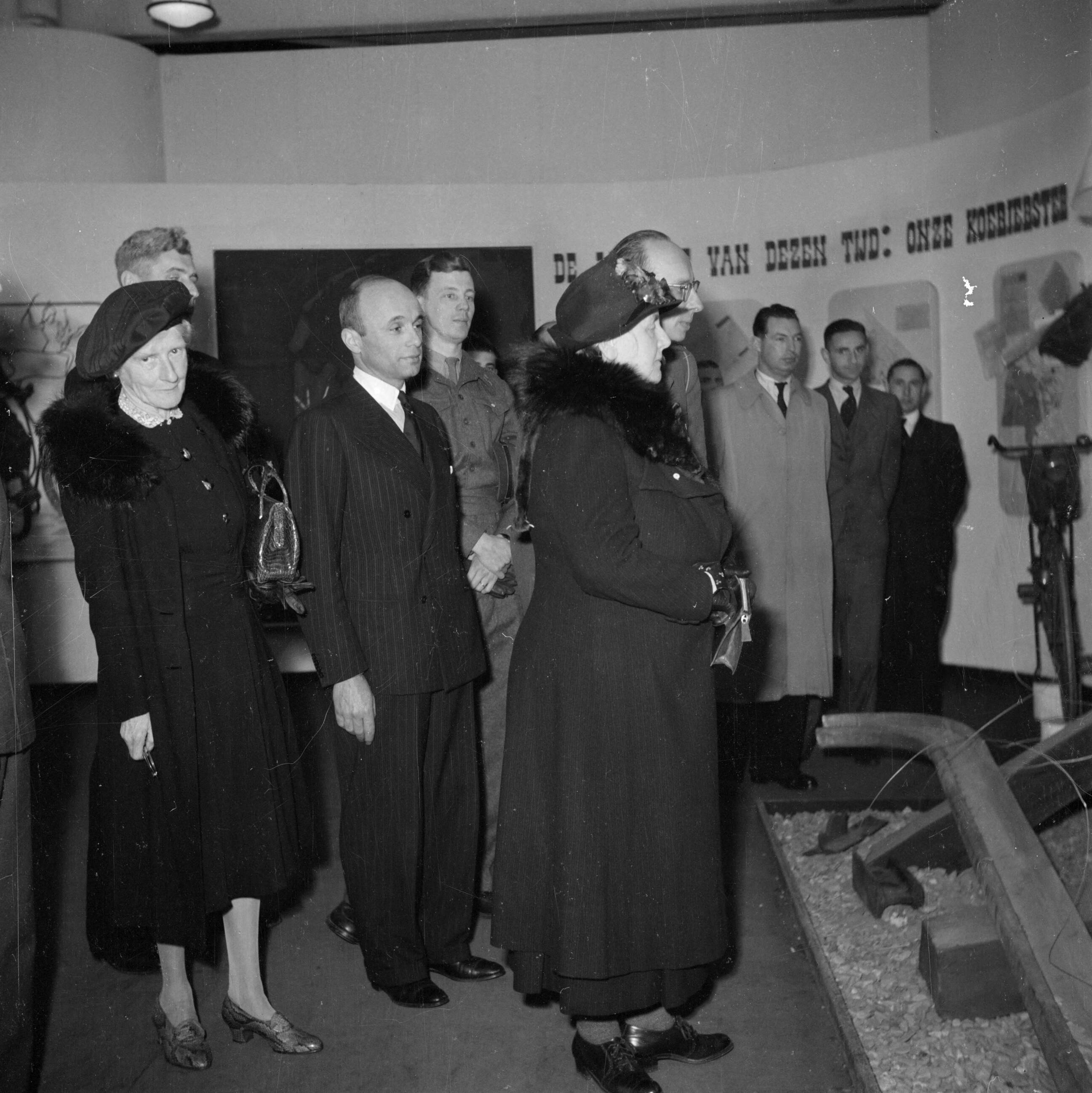 De koningin bekijkt de tentoonstelling