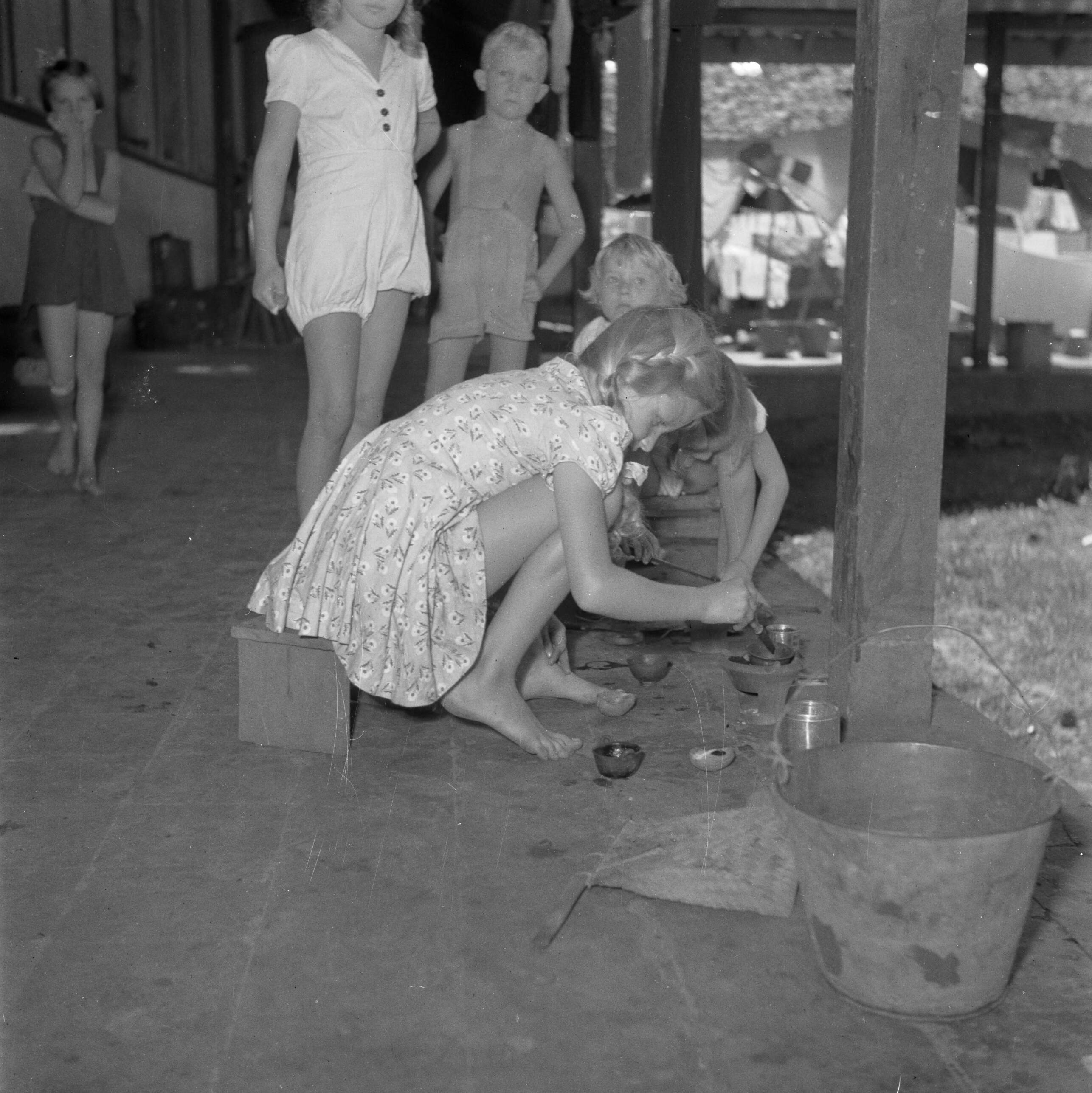 Kinderen bezig met tekenen In het Adek-kamp
