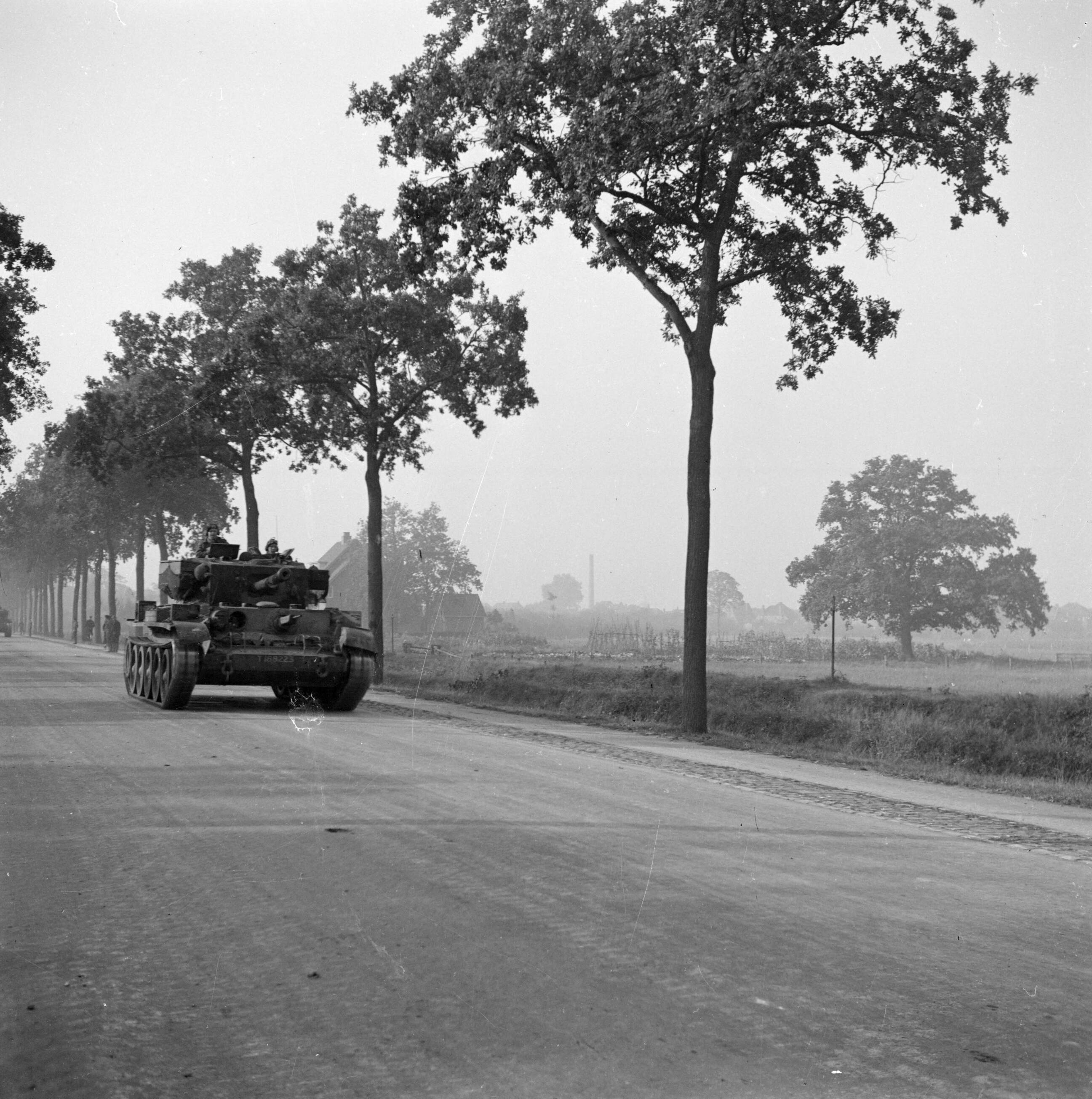 Tankeenheden van de Irish Guards trekken op door de corridor richting Nijmegen