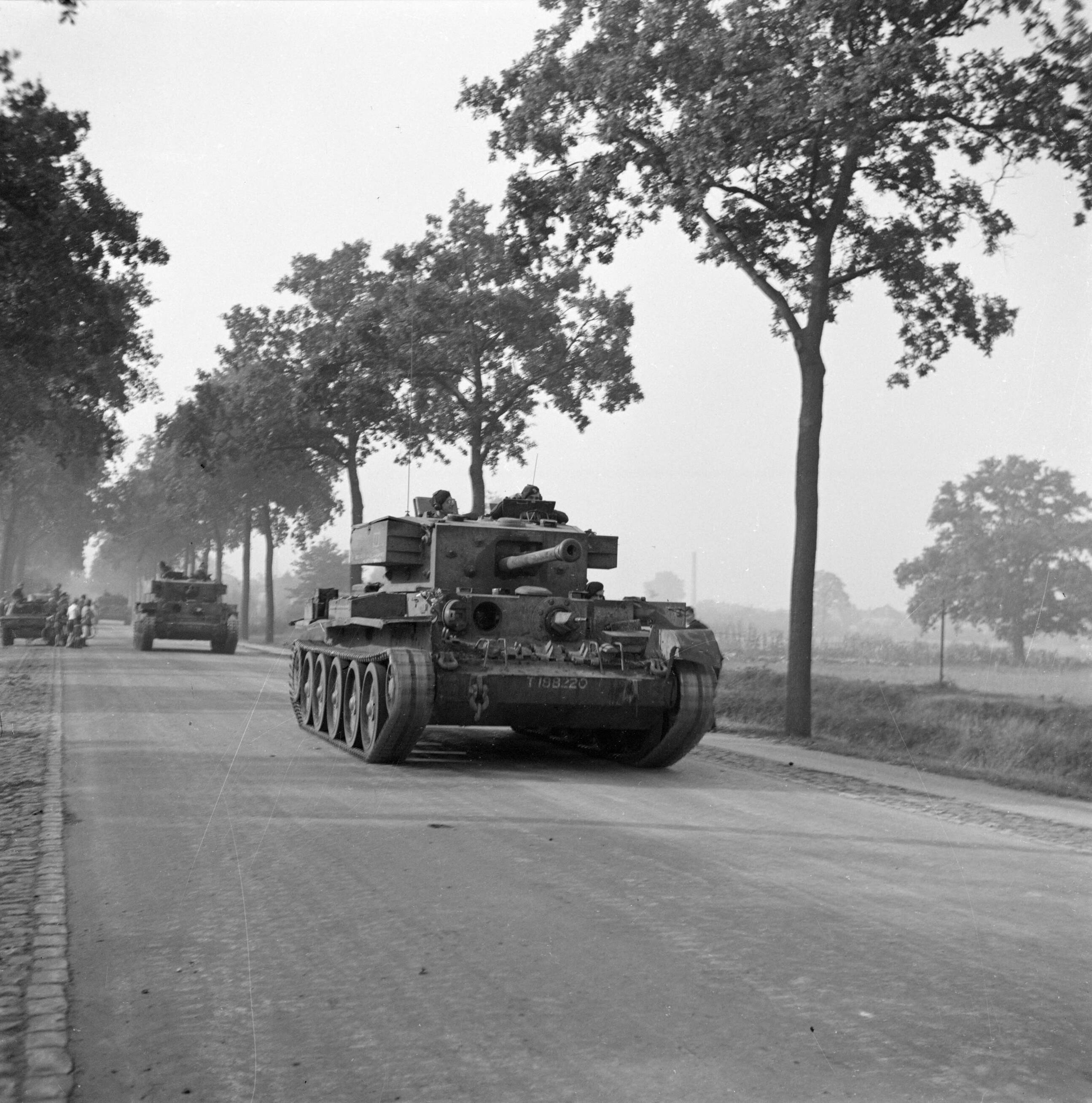 Tankeenheden van de Irish Guards trekken op door de corridor richting Arnhem
