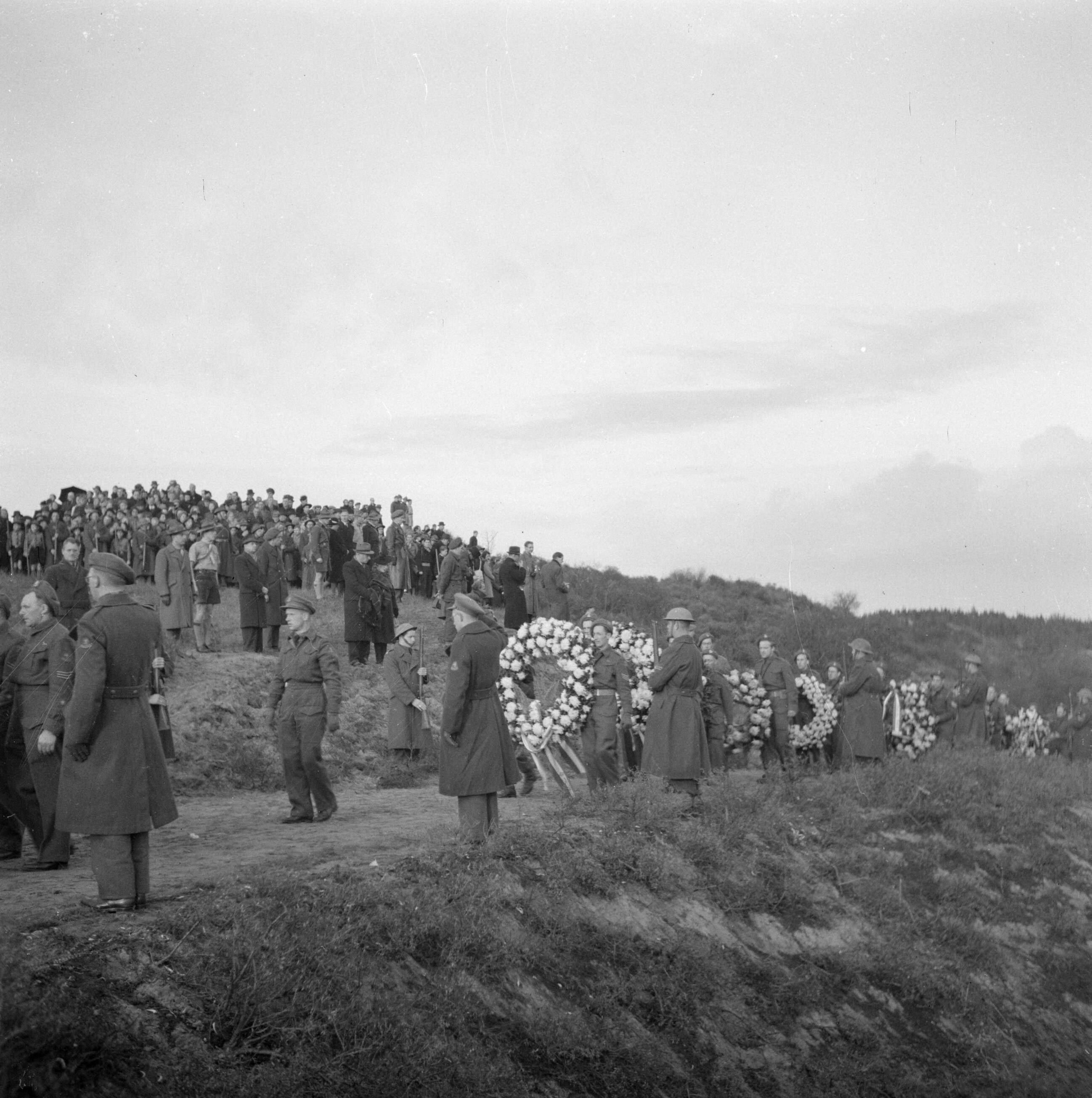 De stoet op weg naar de erebegraafplaats Bloemendaal in Overveen