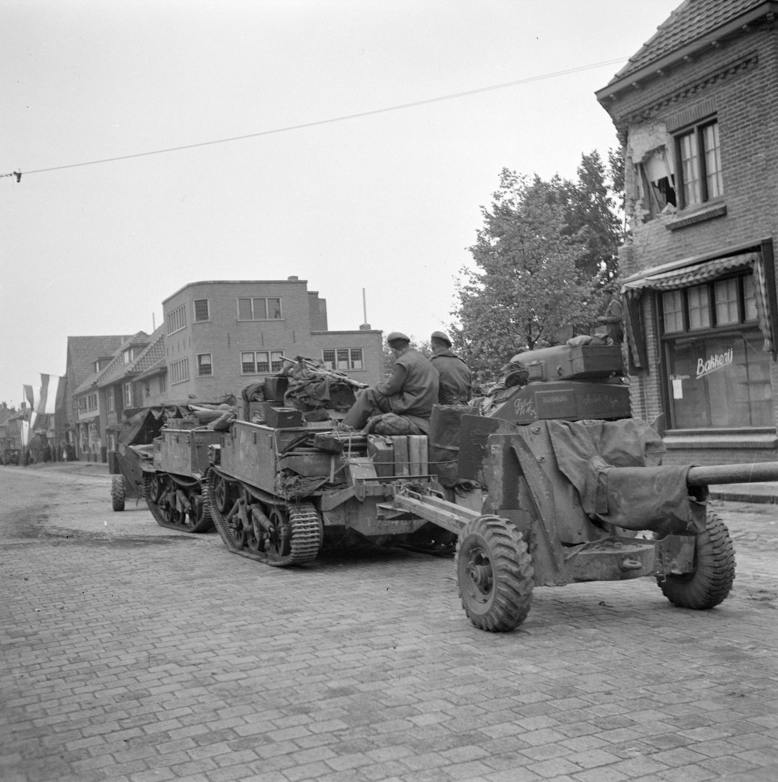 Tankeenheden van de Irish Guards rijden Aalst binnen