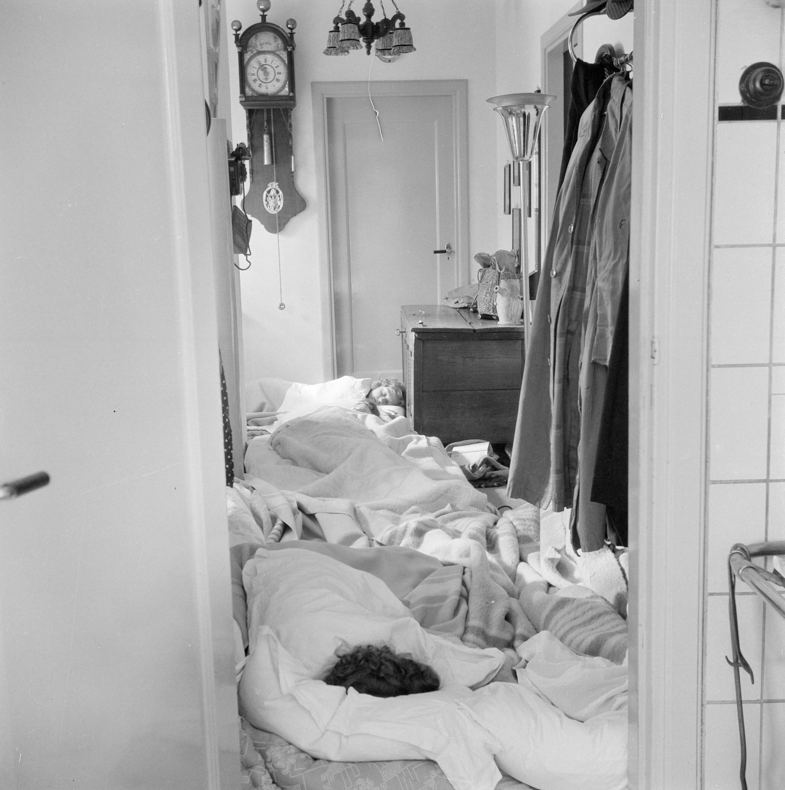 Twee personen slapend op de vloer van een huis, vermoedelijk ten tijde van de bevrijding van Aalst