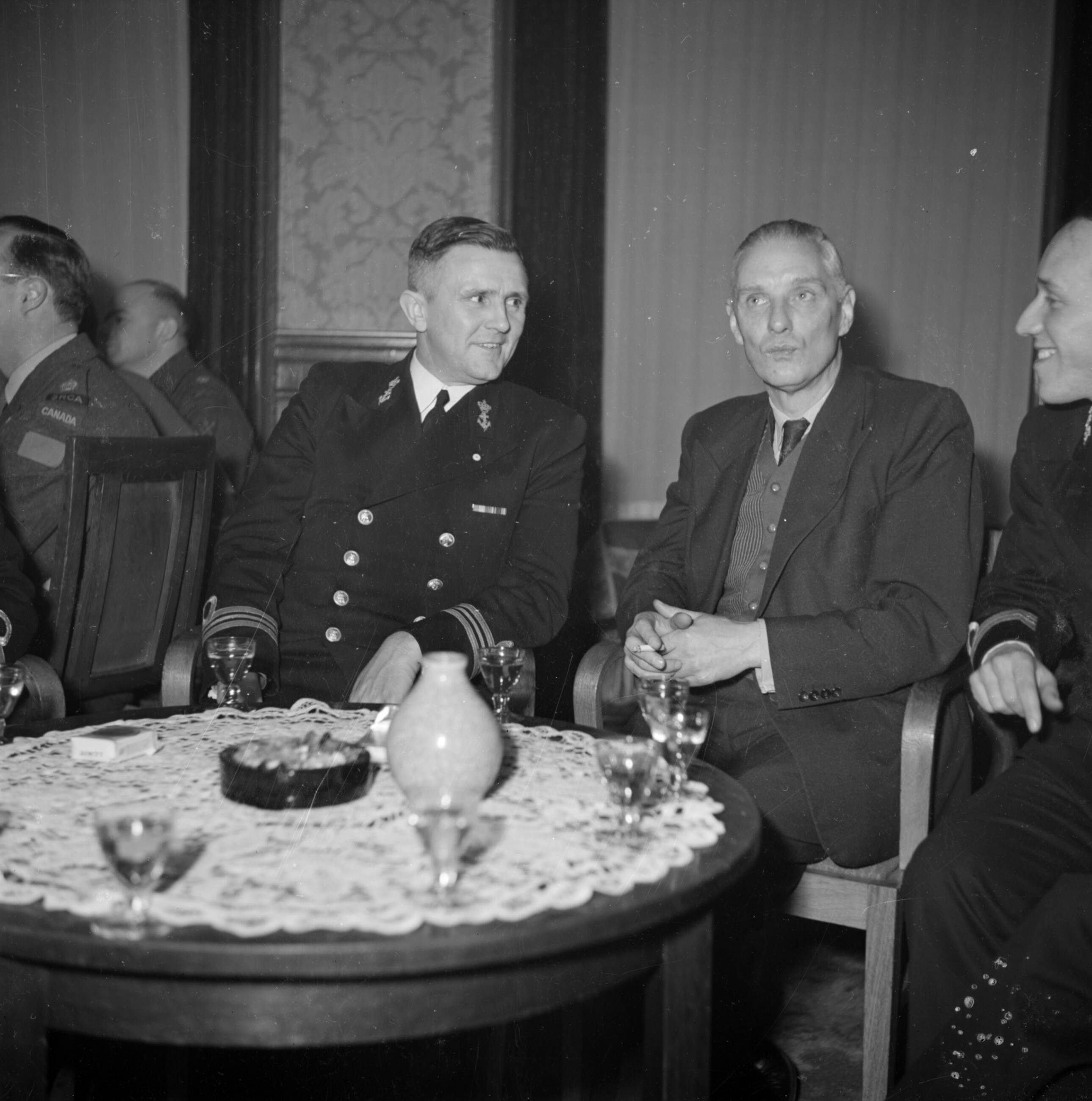 Marineofficier een luitenant-ter-zee 1e klasse en man in burger in een café
