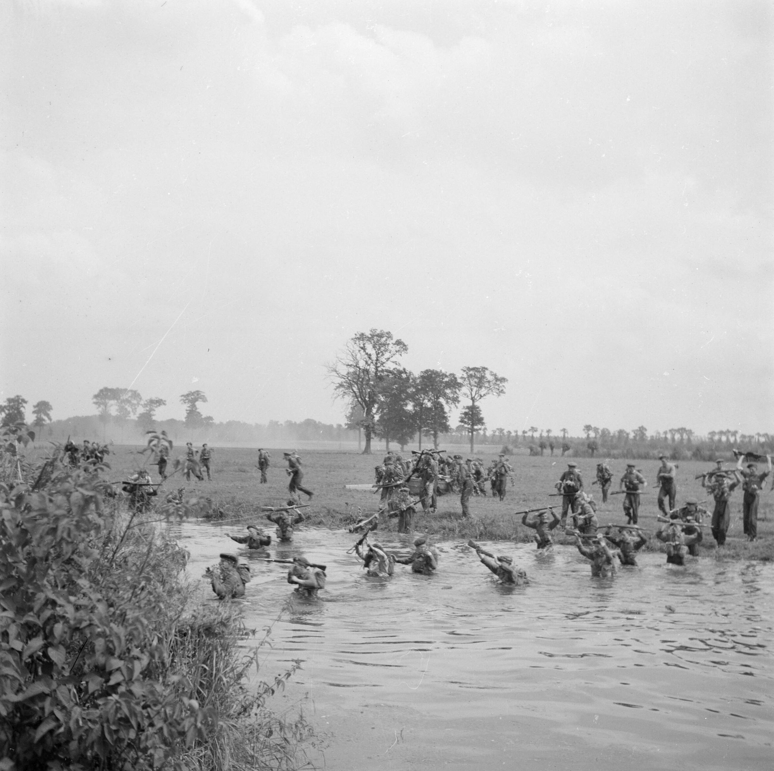 Een militaire oefening. Een rivier moet worden overgestoken. Bezig met de oversteek