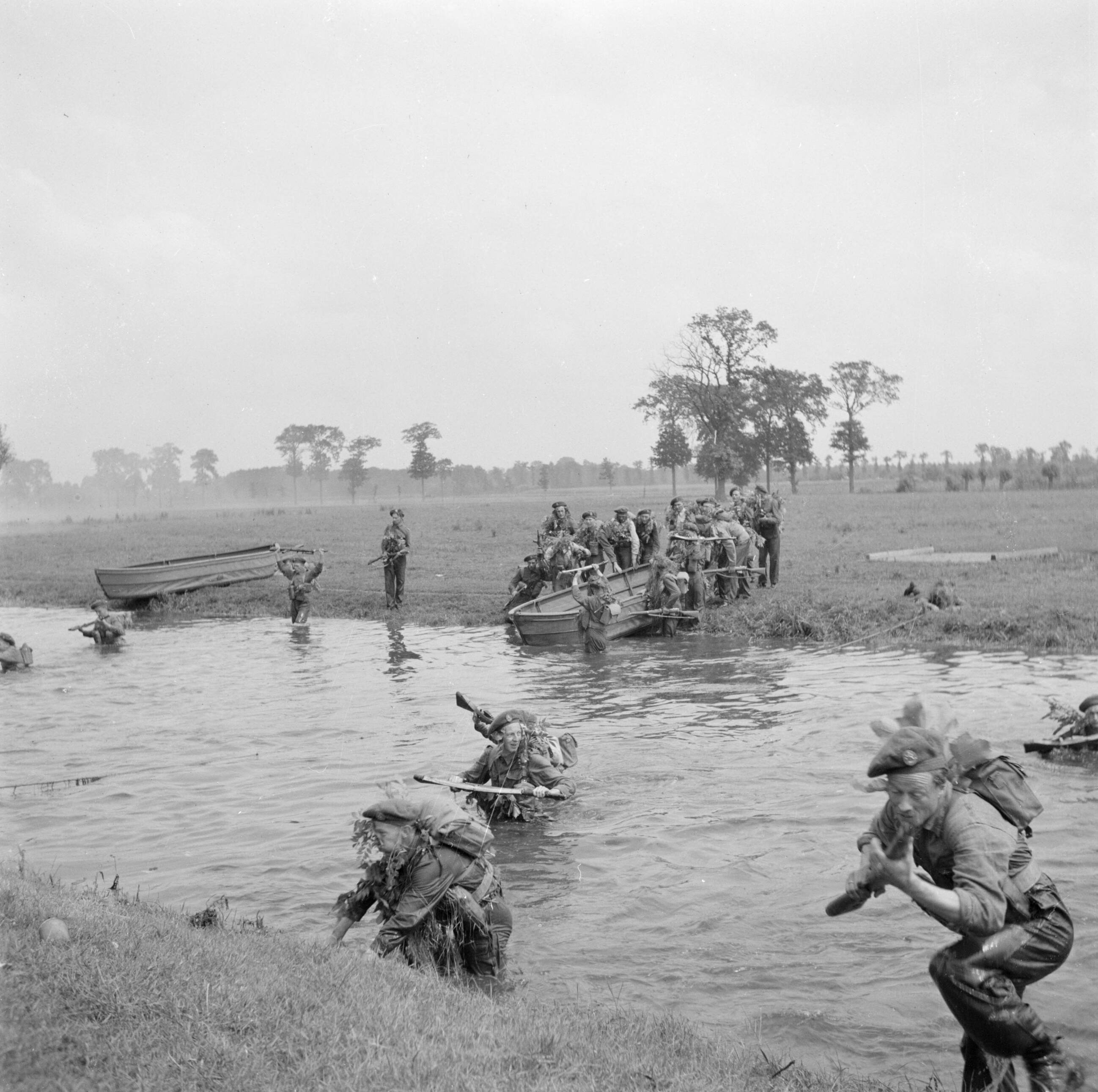 Een militaire oefening. Een rivier moet worden overgestoken. Bezig met de oversteek