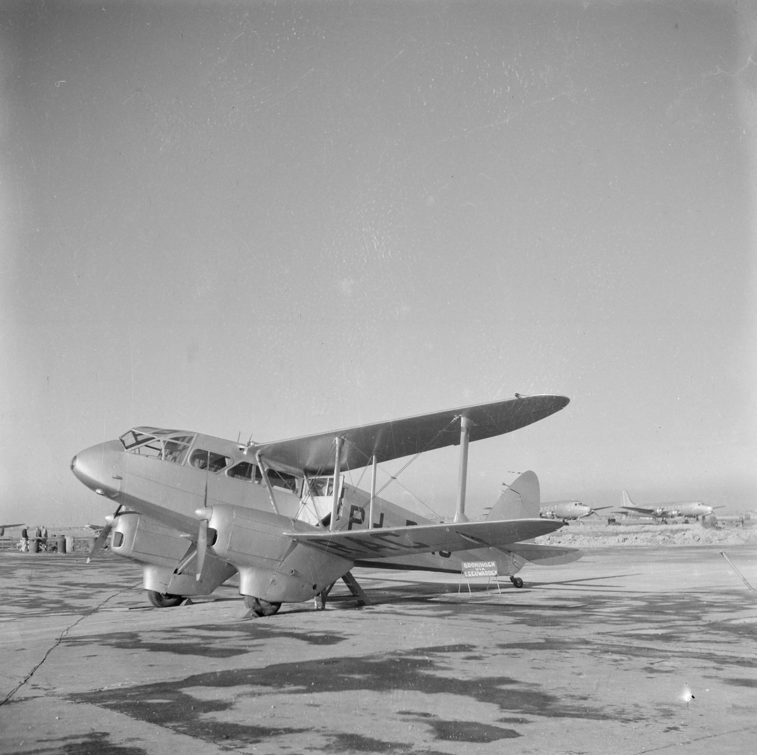 Een De Haviland Dragon Rapide voor de vliegdienst Groningen via Leeuwarden