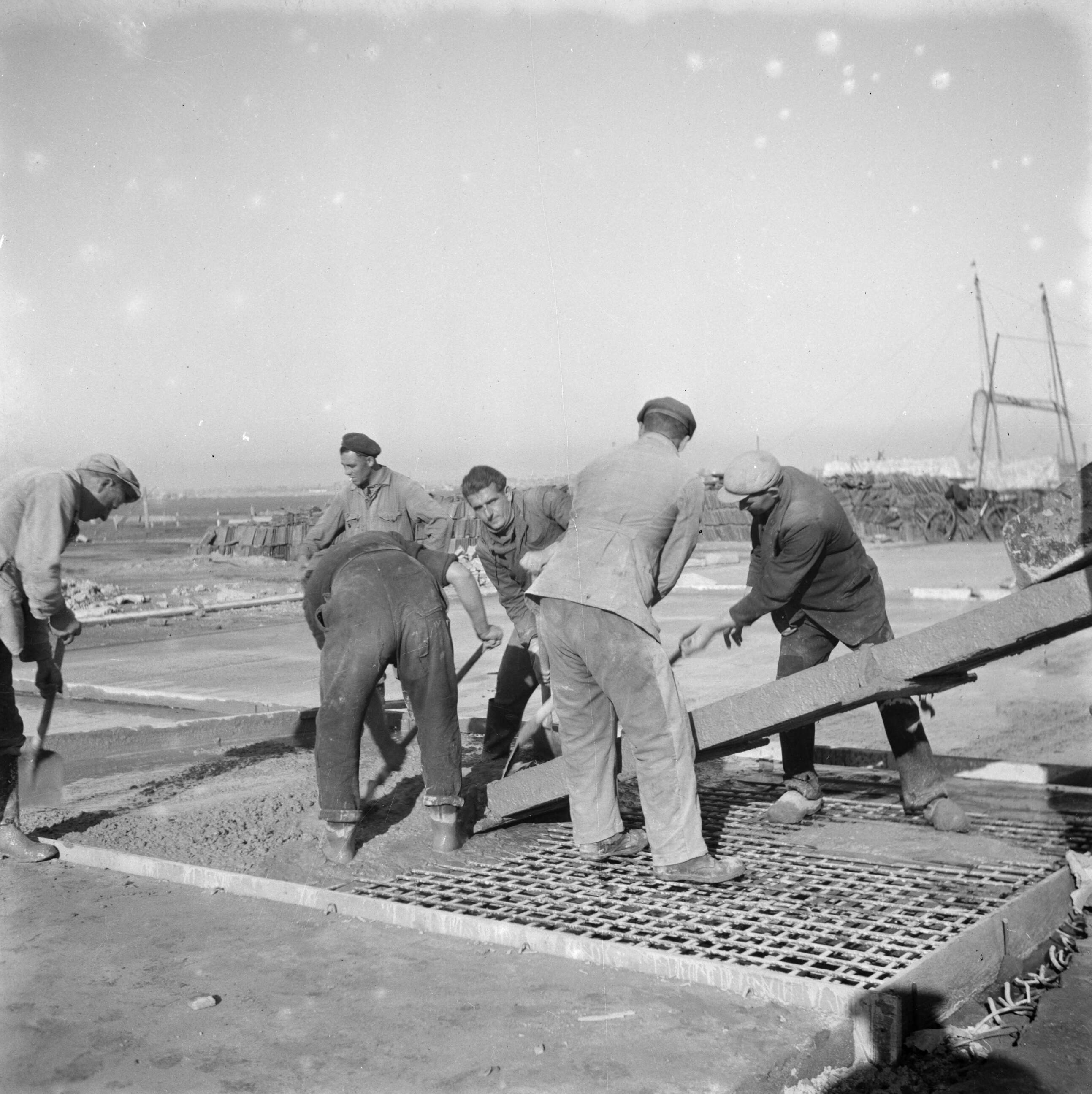 Bouwwerkzaamheden Schiphol. Storten van beton