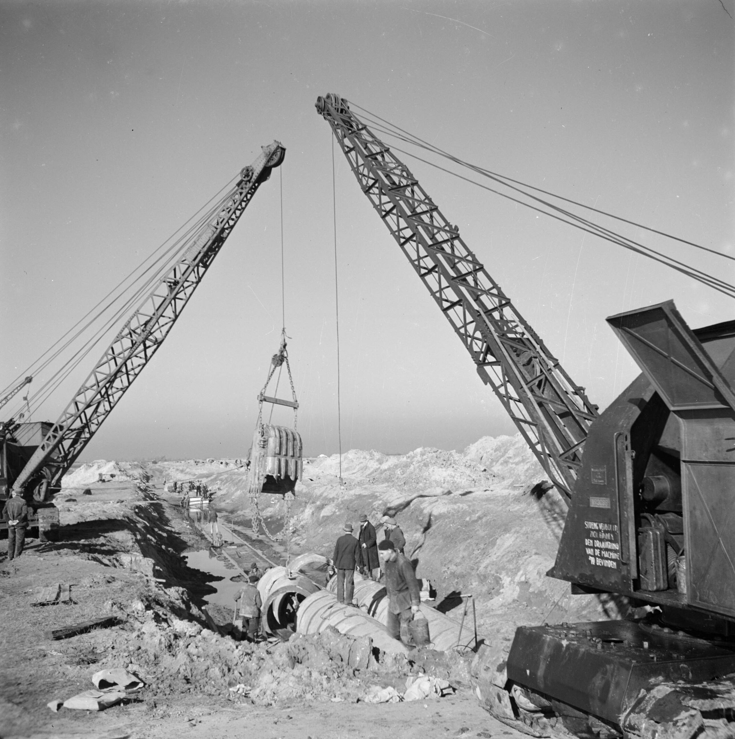 Bouwwerkzaamheden Schiphol. Kraanwagens