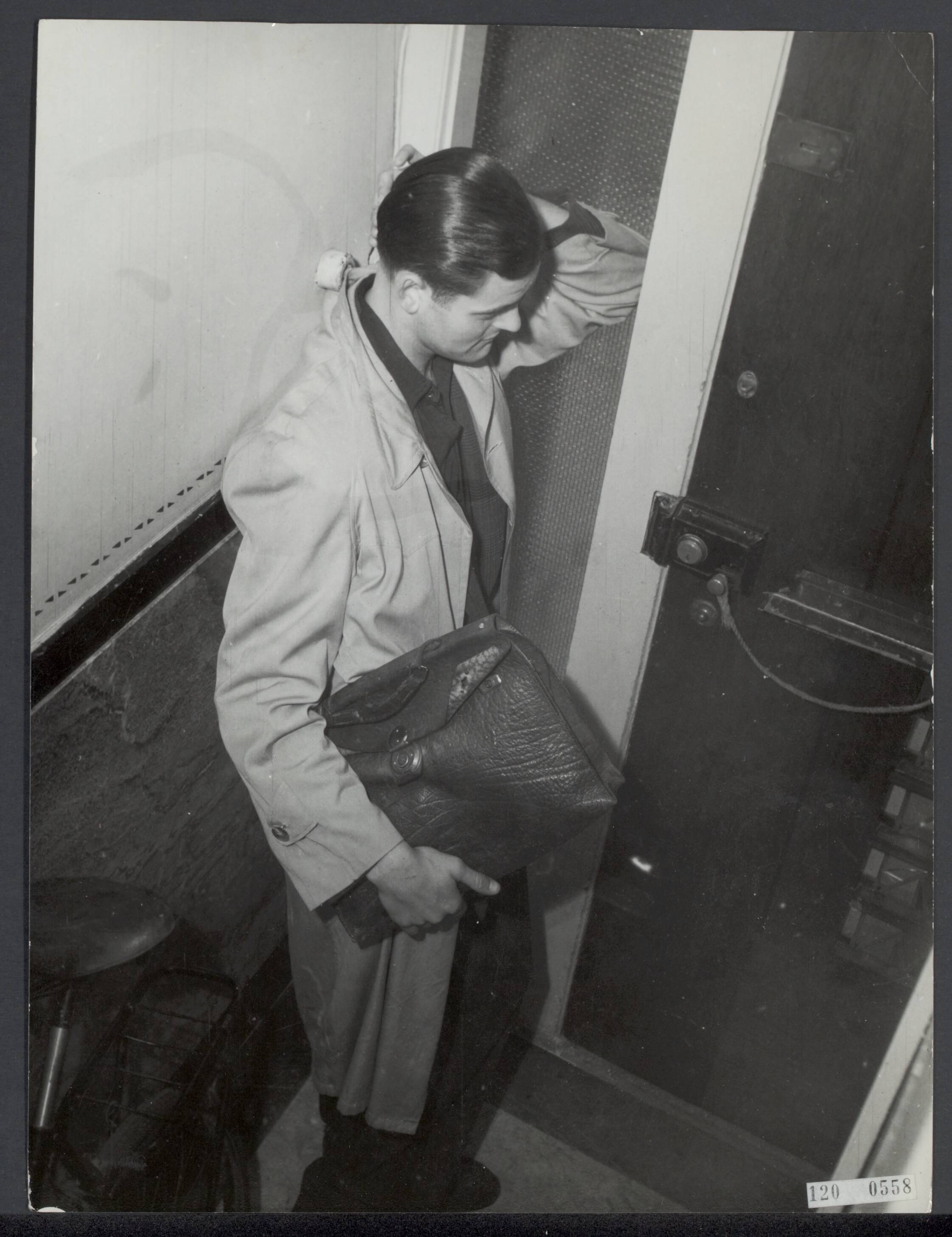 Verzetsman Tony van Renterghem, gefotografeerd na de oorlog. Hier poseert hij in een serie over het Nederlands verzet. Op wacht voor de Gestapo