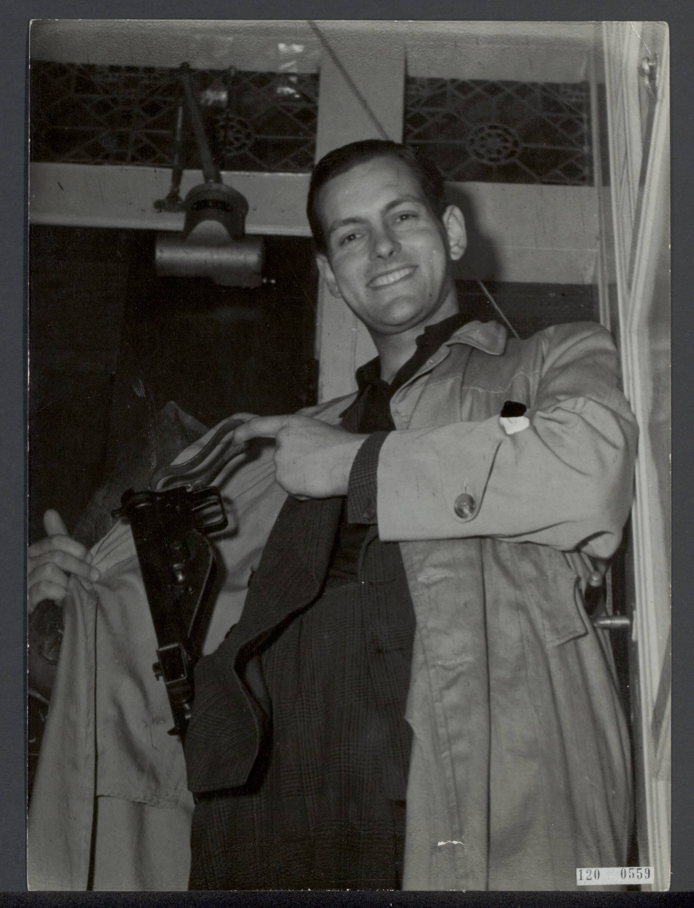 Verzetsman Tony van Renterghem, gefotografeerd na de oorlog. Hier poseert hij in een serie over het Nederlands verzet.