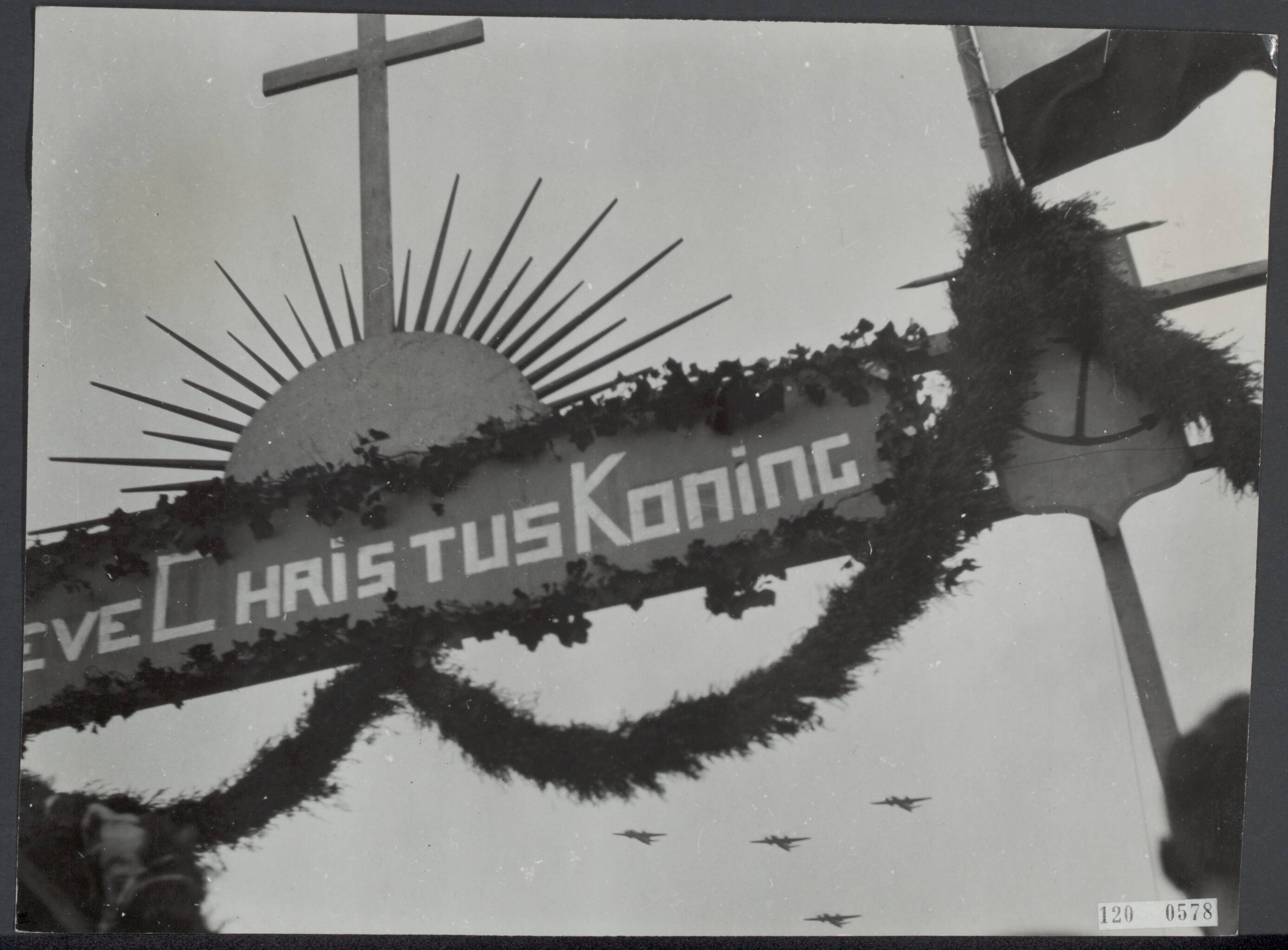 4 Amerikaanse vliegtuigen brengen hulde aan de dappere inwoners van het Nederlandse America door het uitwerpen van een krans en pa...