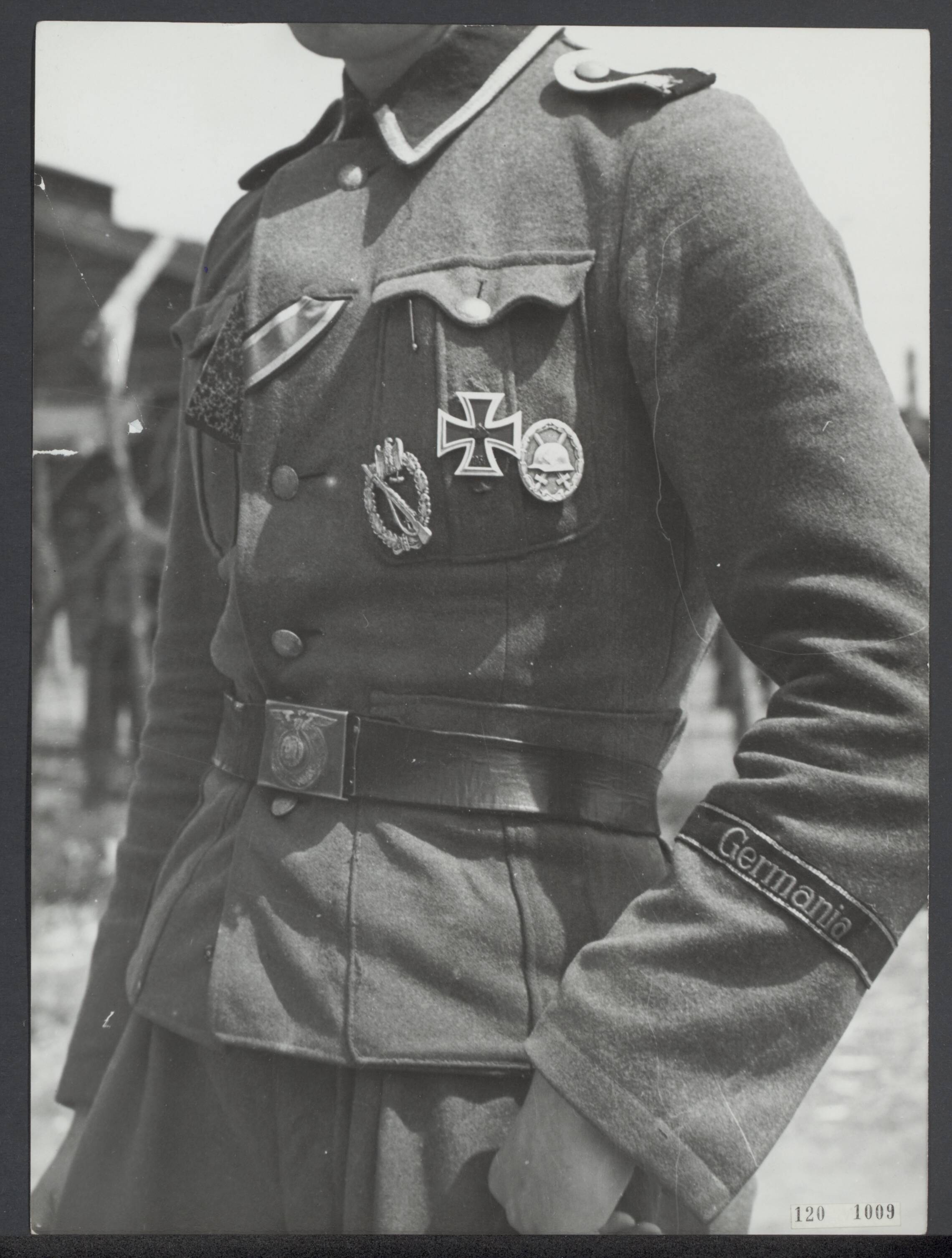 Man in uniform van het regiment "Germania"van de SS Wiking divisie in het gevangenkamp voor Nederlandse SS-ers de Harskamp bij Millingen
