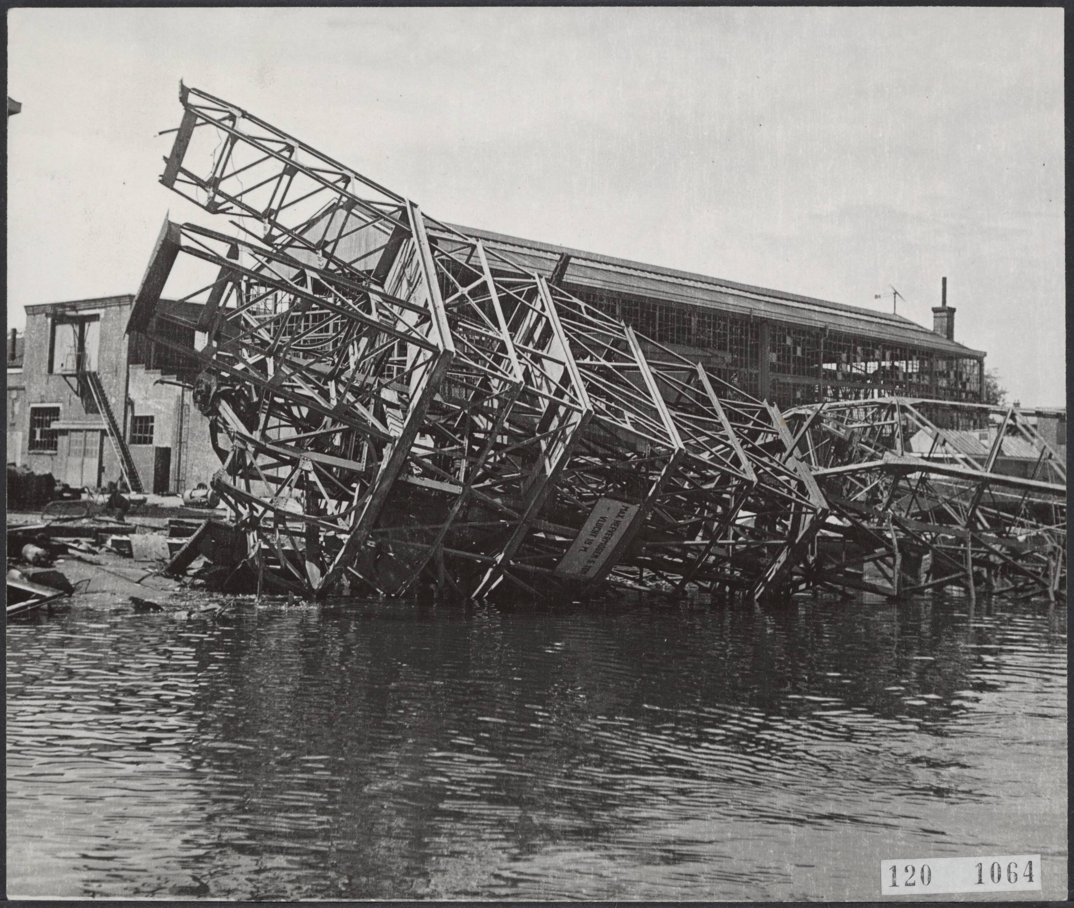 De haven van Amsterdam. Negen maanden zijn de vernielingscommando's van de Duitsers bezig geweest de havens en haveninstallaties van Amsterdam onbruikbaar te maken. Kademuren werden opgeblazen, kranen, drijvende bokken en gebouwen vernield en schepen tot zinken gebracht in de haveningangen. Maar wie nu op het IJ vaart, ziet niet alleen de vernielingen, maar ook de eerste tekenen van herleving. De ruïne langs de kade. Vrijwel alle kranen en haveninstallaties zijn totaal verwoest