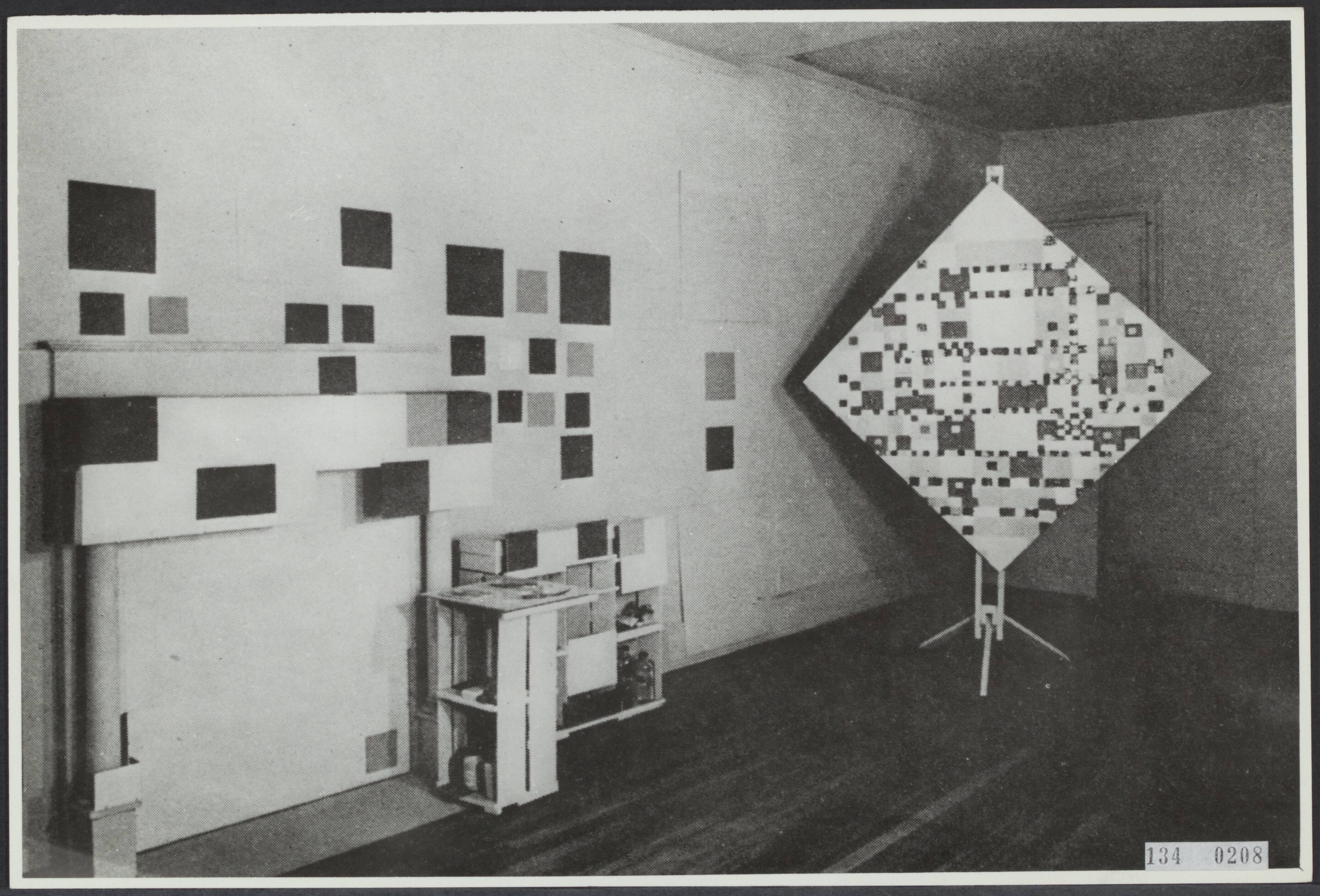 Atelier van Piet Mondriaan in New York na zijn dood Op de ezel "Victory Boogie Woogie"