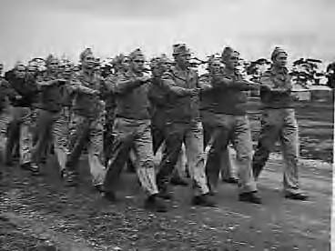 Nederlandse recruten van het KNIL uit Europa in training op Camp Darley, Victoria (Australië).