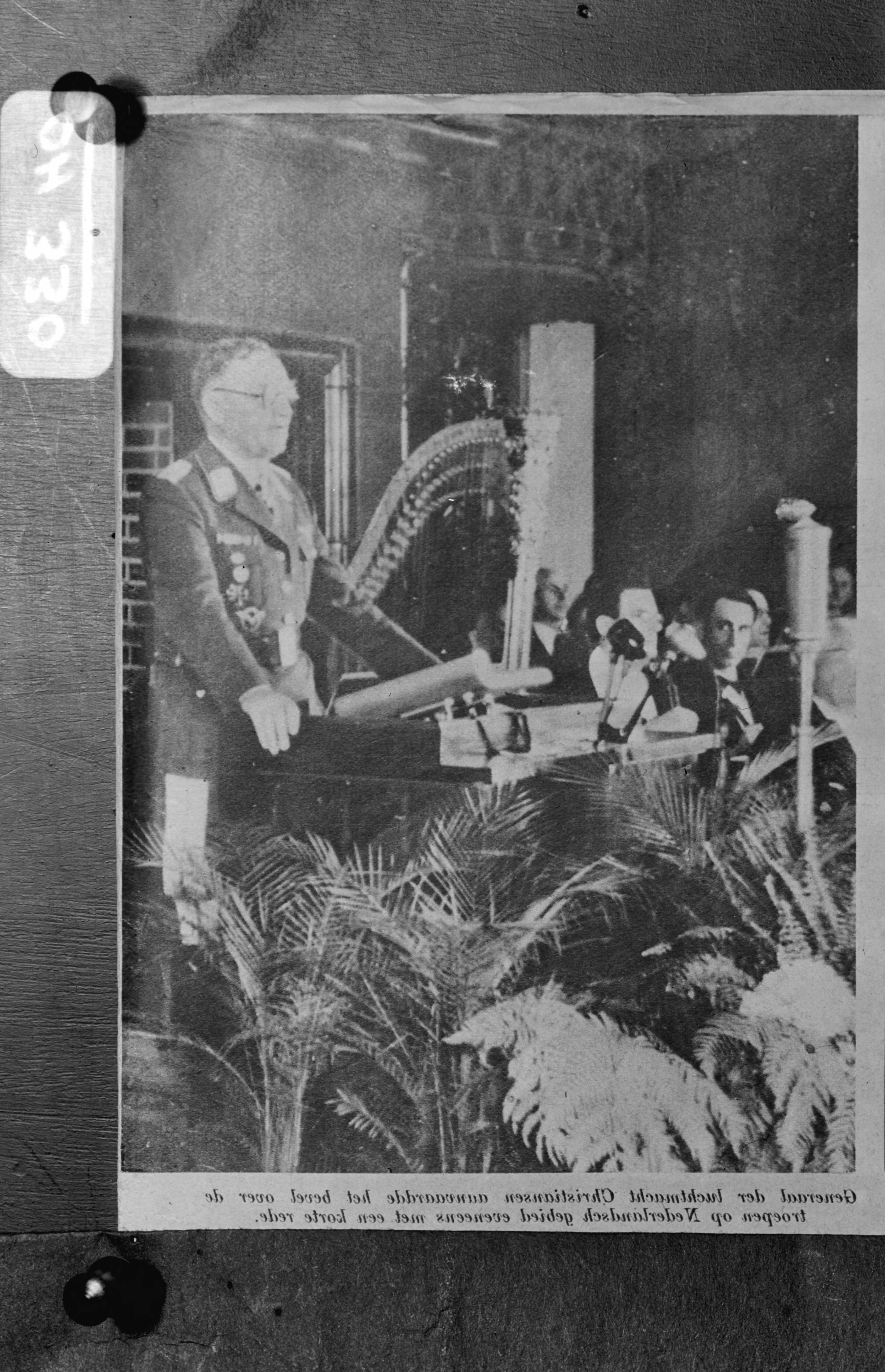 General der Flieger, F. C. Christiansen, houdt een rede bij zijn installatie in de Ridderzaal te Den Haag als opperbevelhebber van de Wehrmacht in bezet Nederland